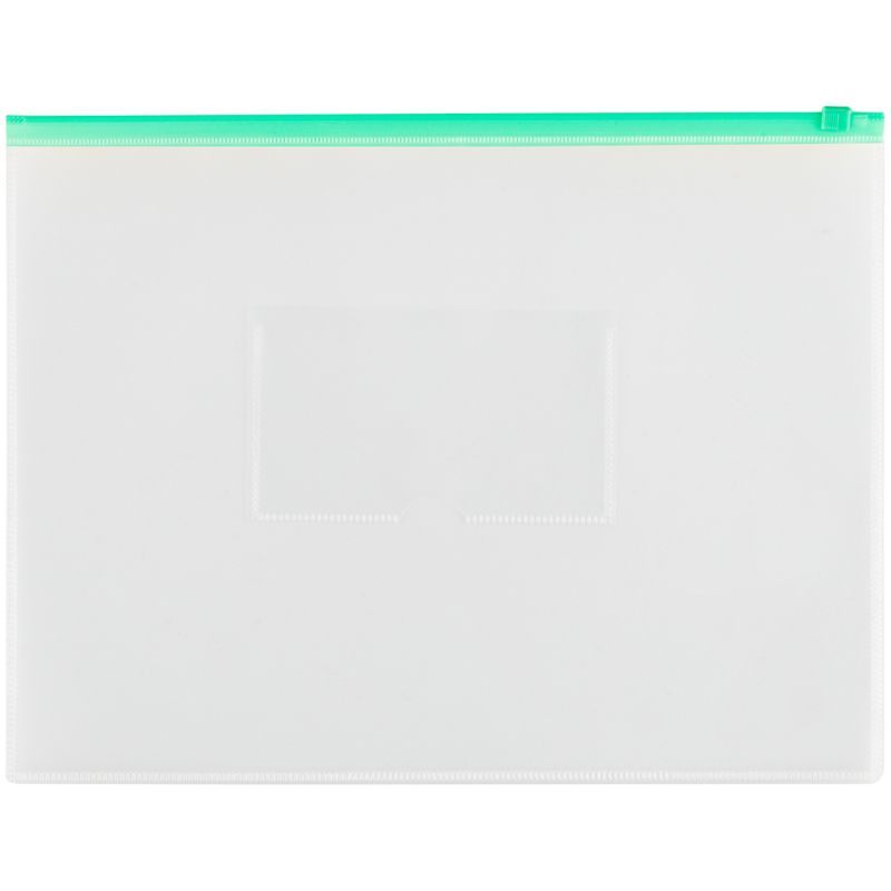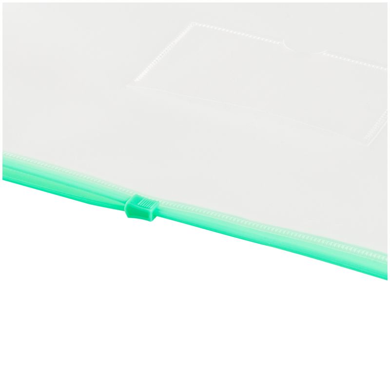 Папка-конверт на zip-молнии СТАММ А4, полипропилен, 150мкм, прозрачная, карман, молния зеленая