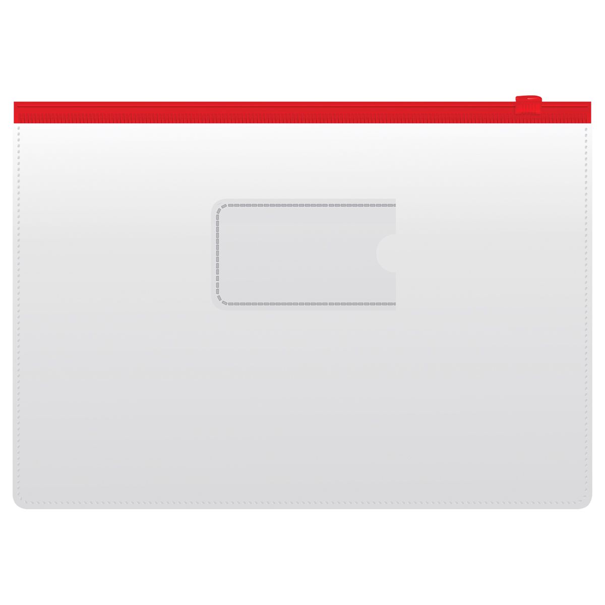 Папка-конверт на zip-молнии СТАММ А4, ПВХ, 120мкм, прозрачная, цветная молния, карман, ассорти