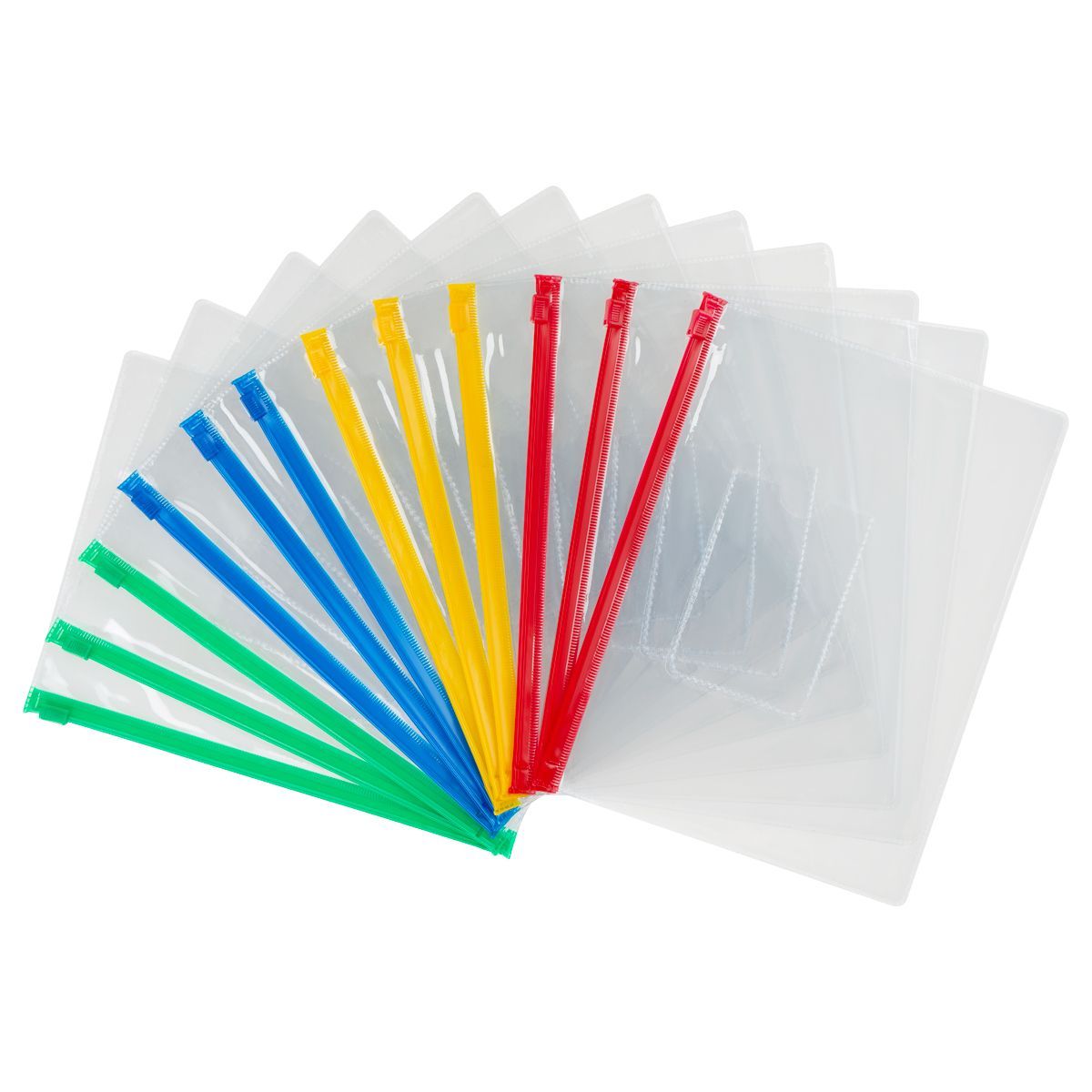 Папка-конверт на zip-молнии СТАММ В5, ПВХ, 120мкм, прозрачная, цветная молния, карман, ассорти