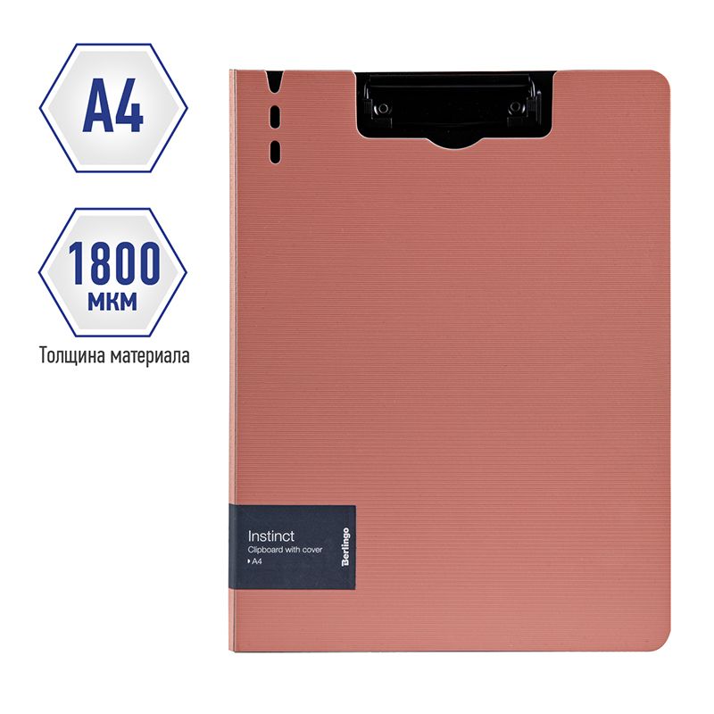 Папка-планшет с зажимом Berlingo "Instinct", А4, пластик (полифом), фламинго/черный