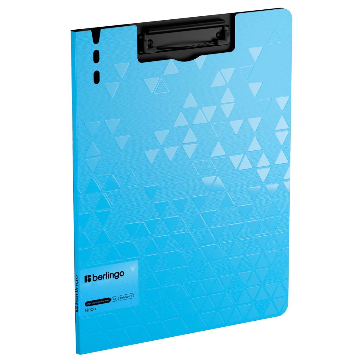 Папка-планшет с зажимом Berlingo "Neon" А4, пластик (полифом), 1800мкм, голубой неон