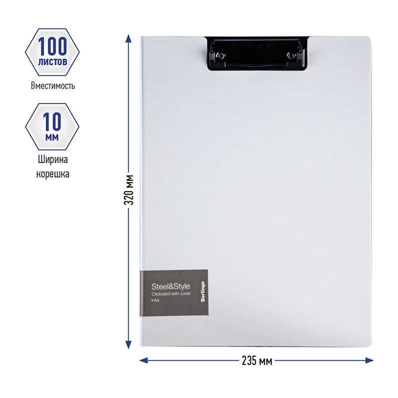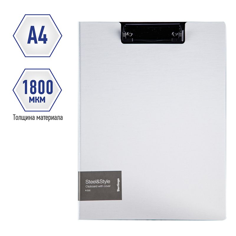 Папка-планшет с зажимом Berlingo "Steel&Style" А4, пластик (полифом), белая