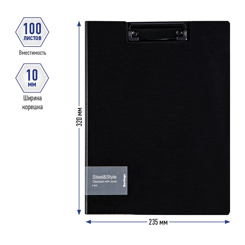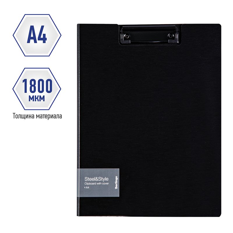 Папка-планшет с зажимом Berlingo "Steel&Style" А4, пластик (полифом), черная