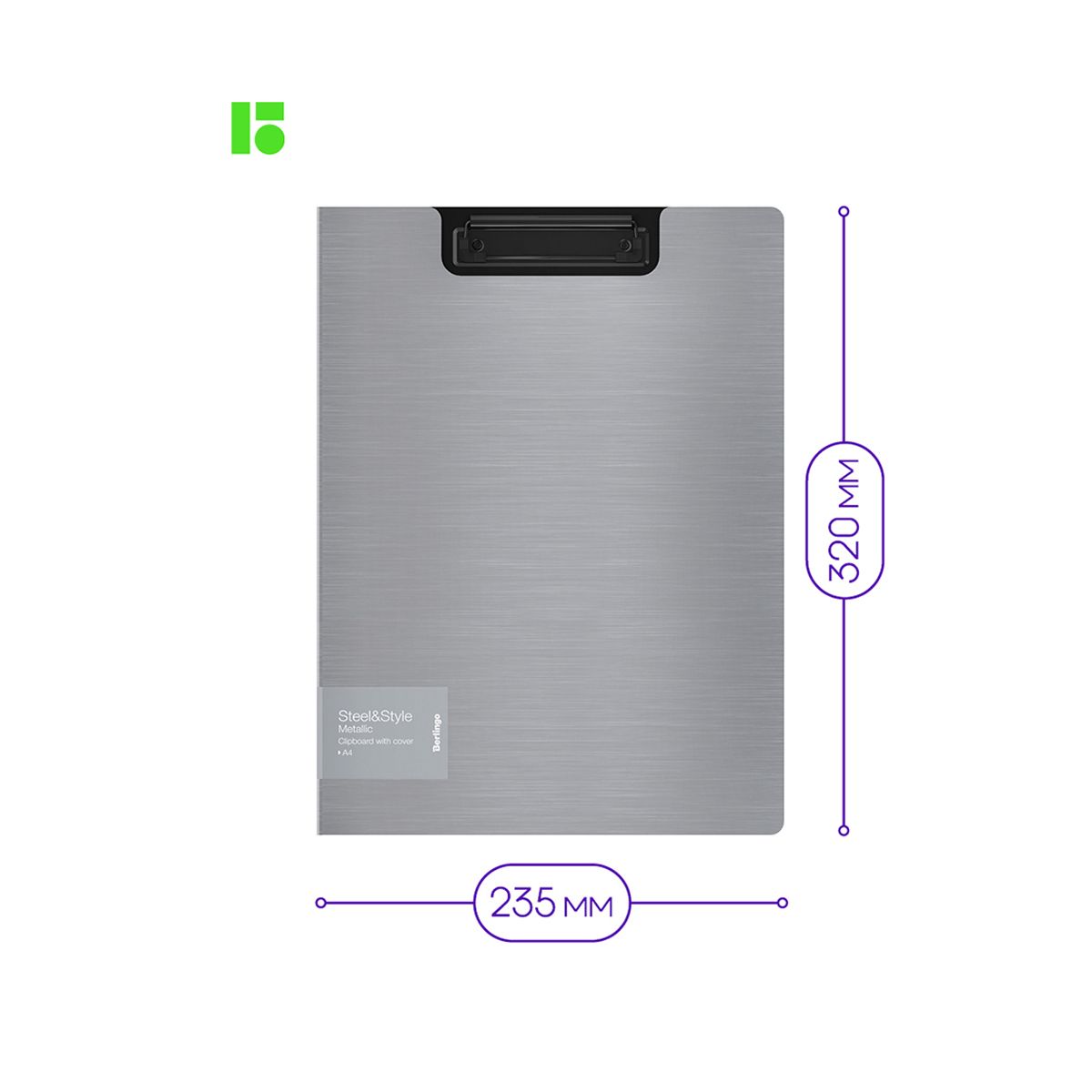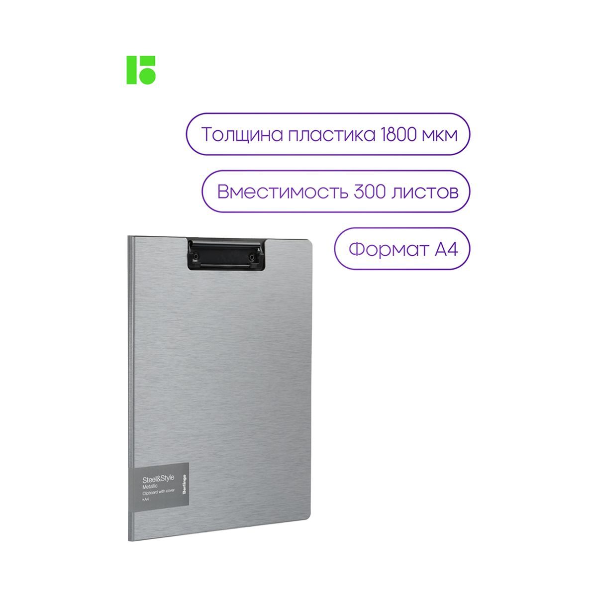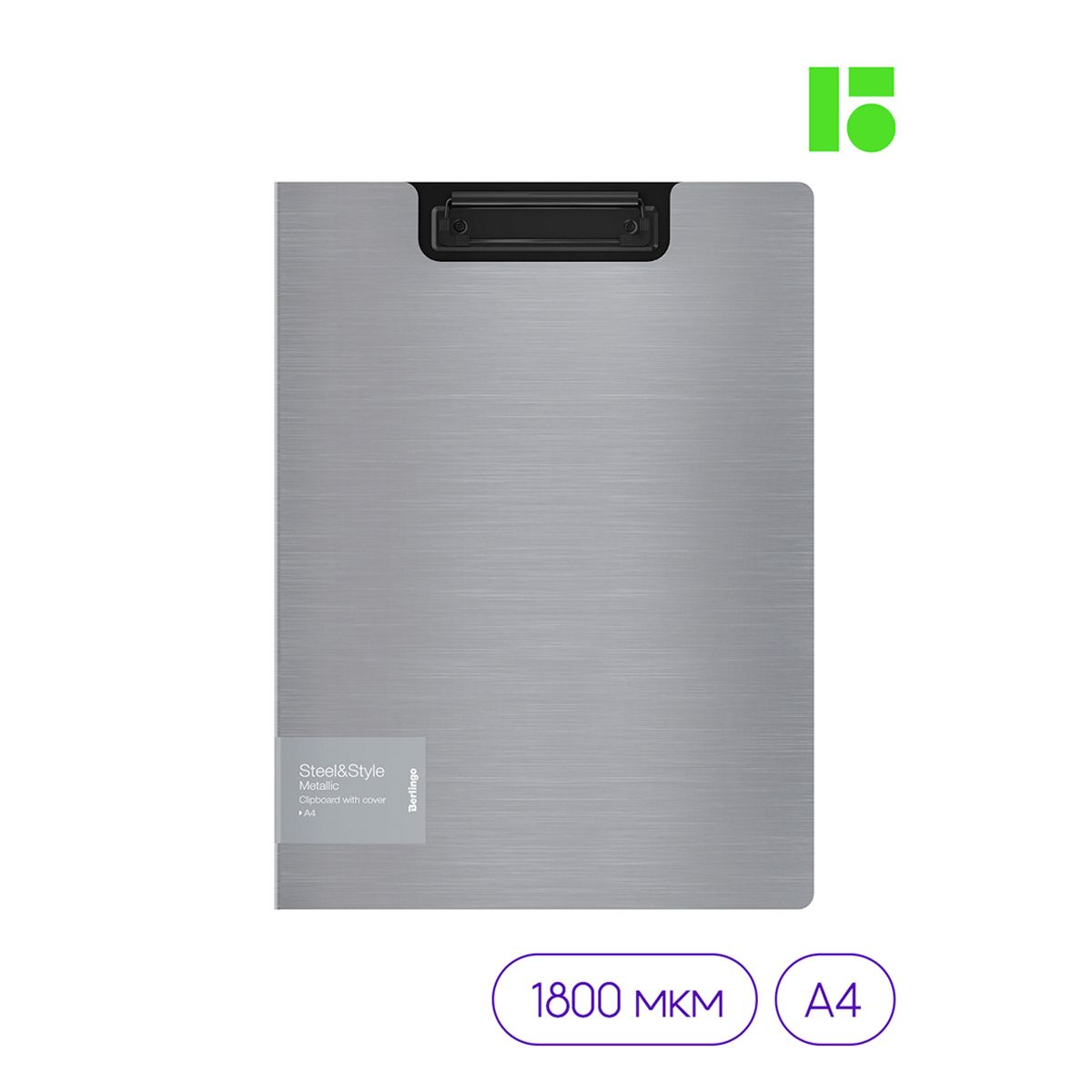 Папка-планшет с зажимом Berlingo "Steel&Style" А4, пластик (полифом), серебристый металлик