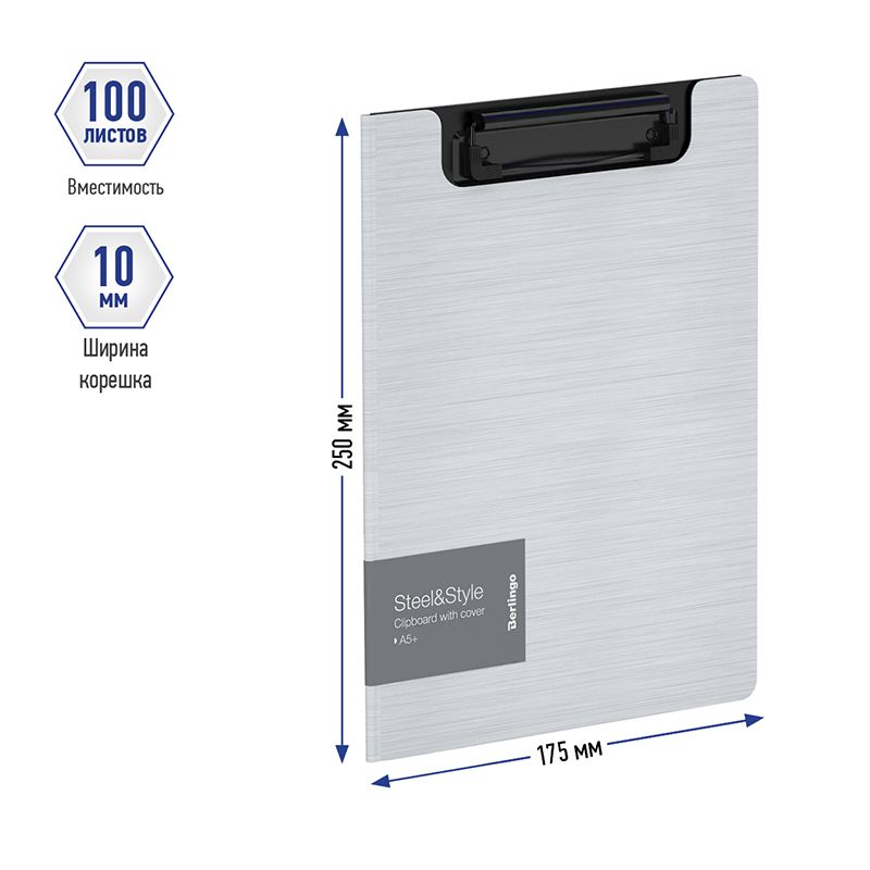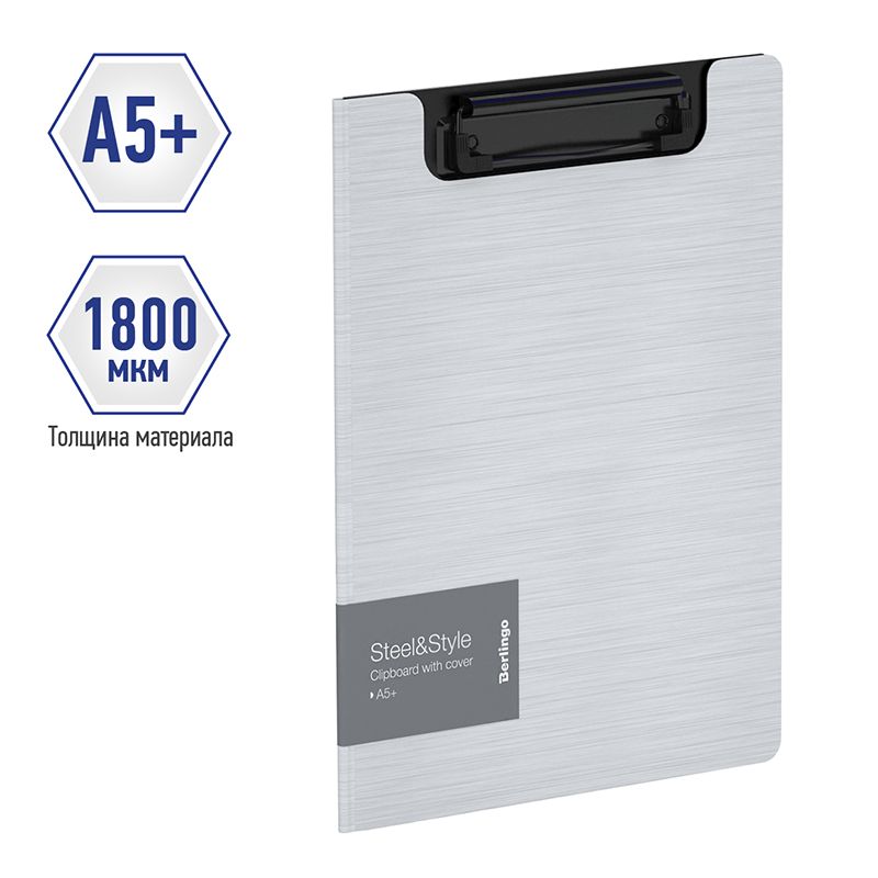Папка-планшет с зажимом Berlingo "Steel&Style" А5+, 1800мкм, пластик (полифом), белая