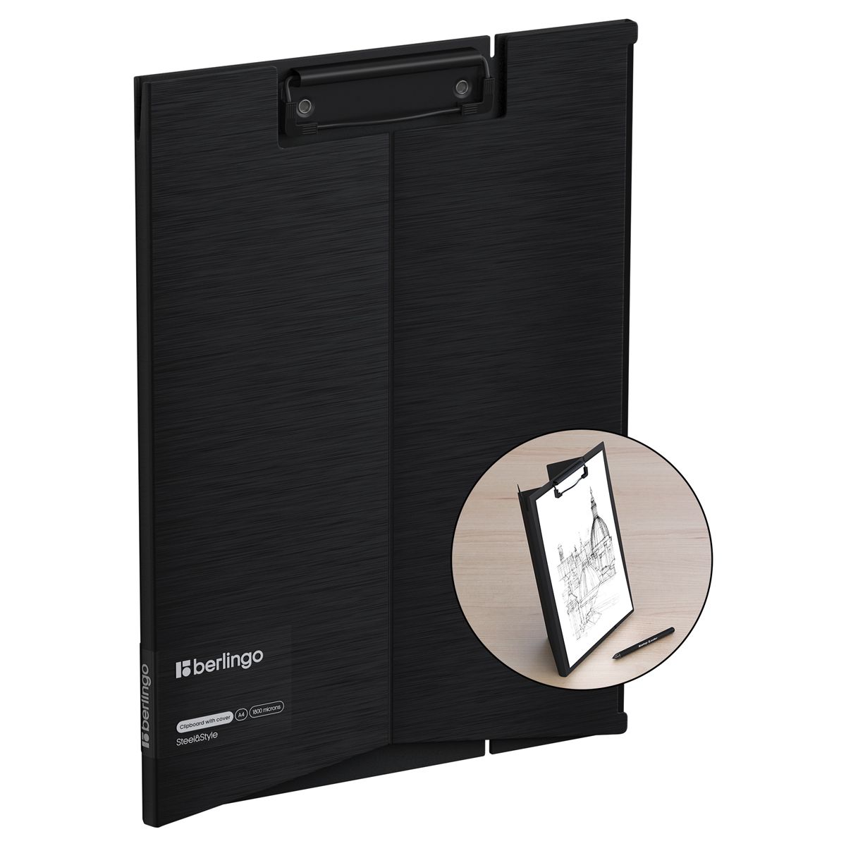 Планшет-трансформер с зажимом Berlingo "Steel&Style" А4, пластик (полифом), 1800мкм, черный
