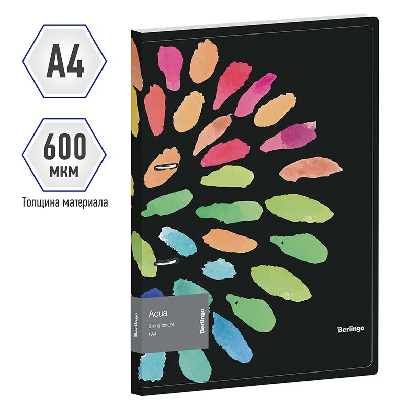 Папка на 2 кольцах Berlingo "Aqua", 24мм, 600мкм, D-кольца, с внутр. карманом, с рисунком
