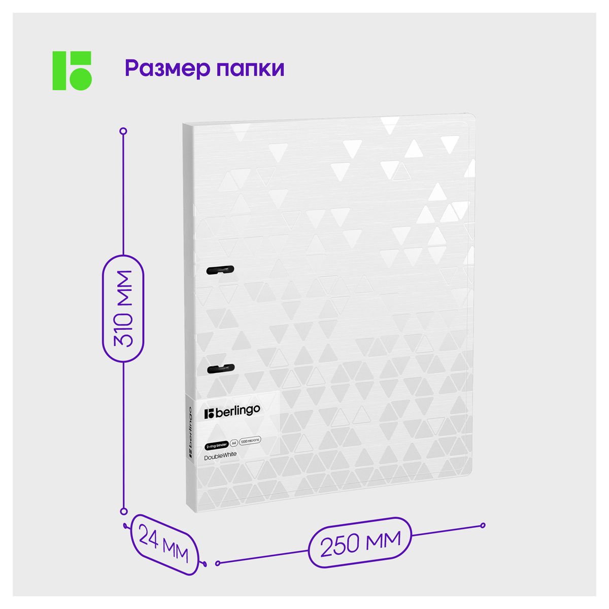 Папка на 2 кольцах Berlingo "DoubleWhite", 24мм, 1000мкм, белая, D-кольца, с внутр. карманом