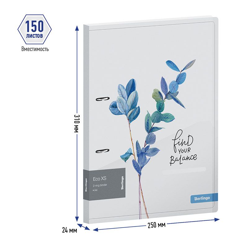 Папка на 2 кольцах Berlingo "Eco XS", 24мм, 600мкм, с рисунком, D-кольца, с внутр. карманом