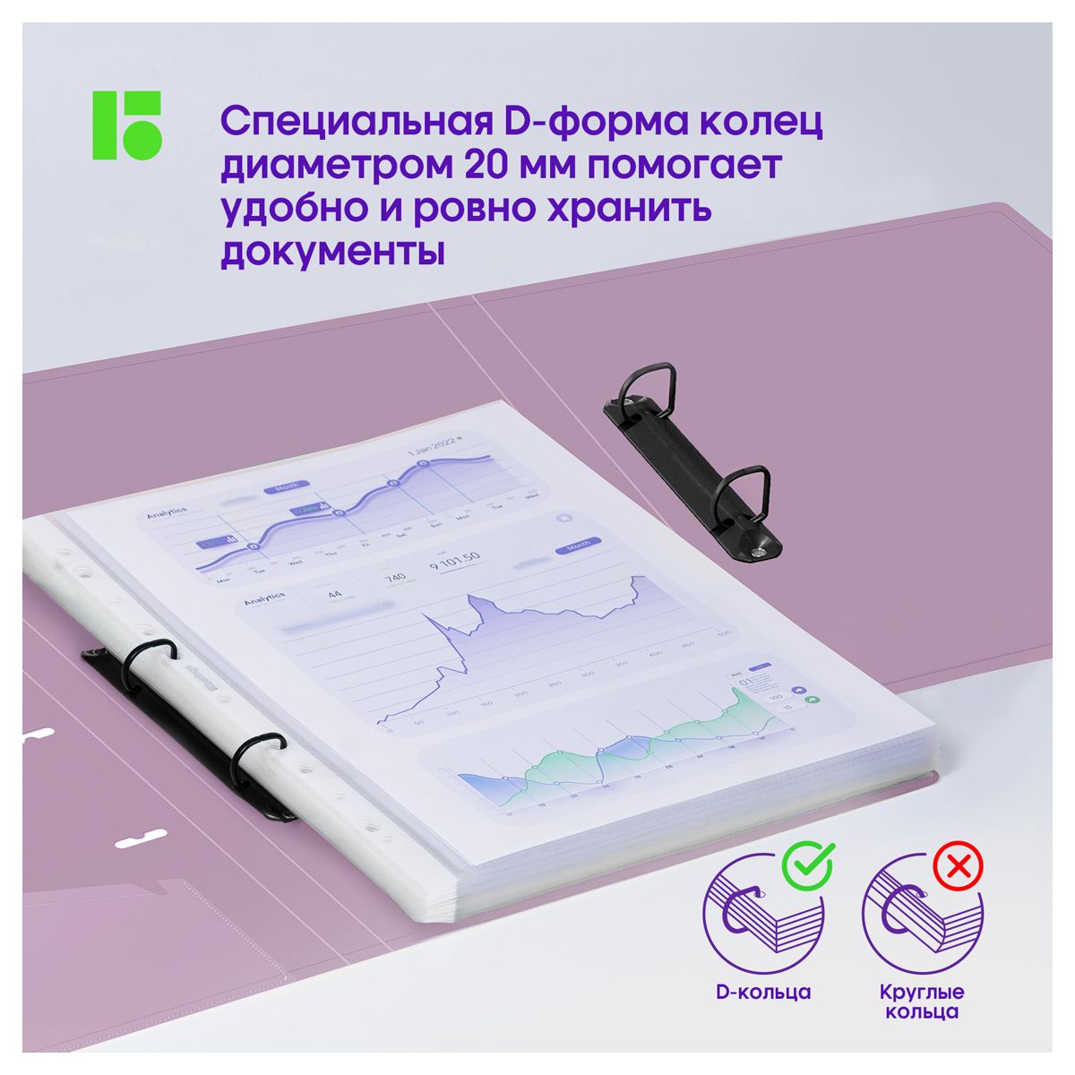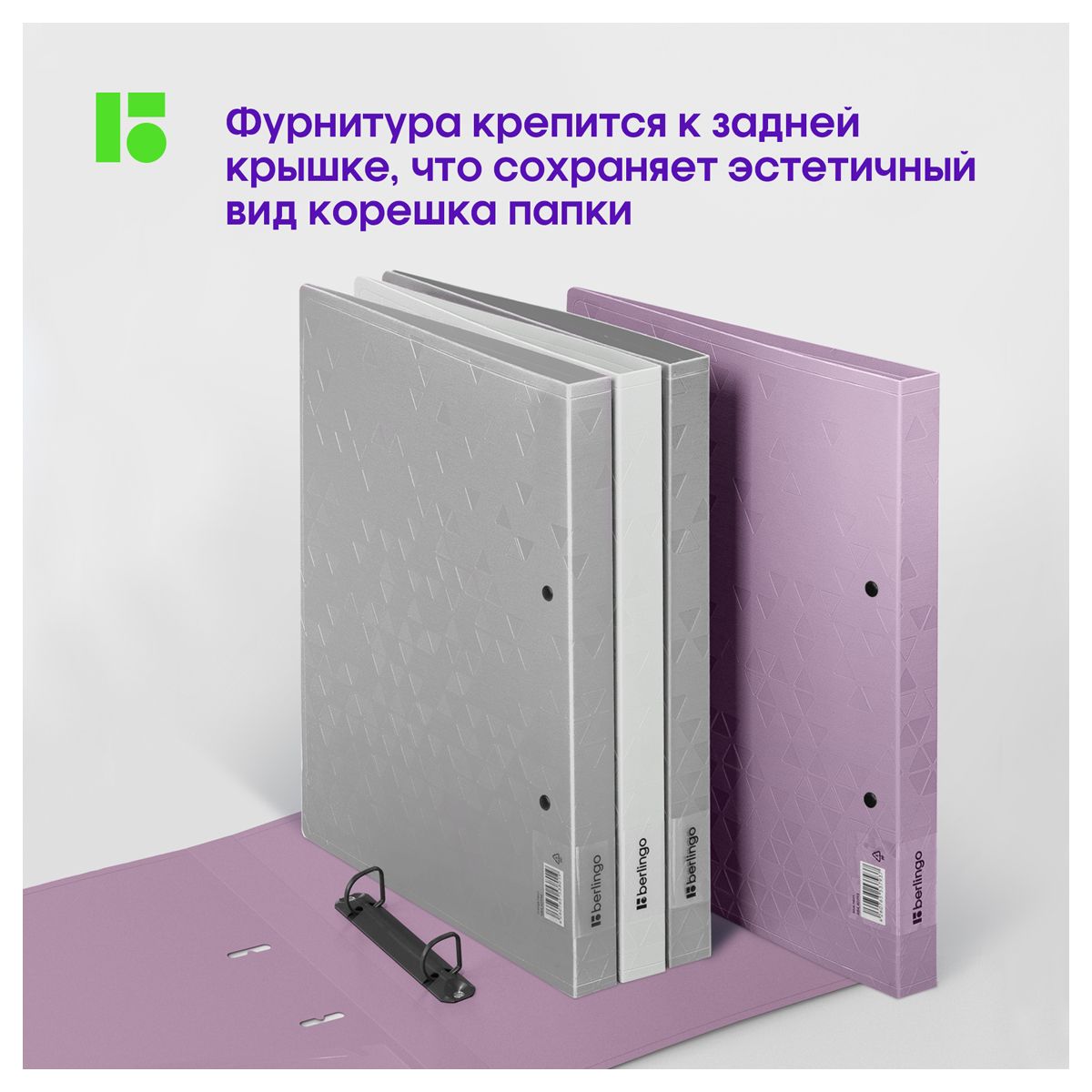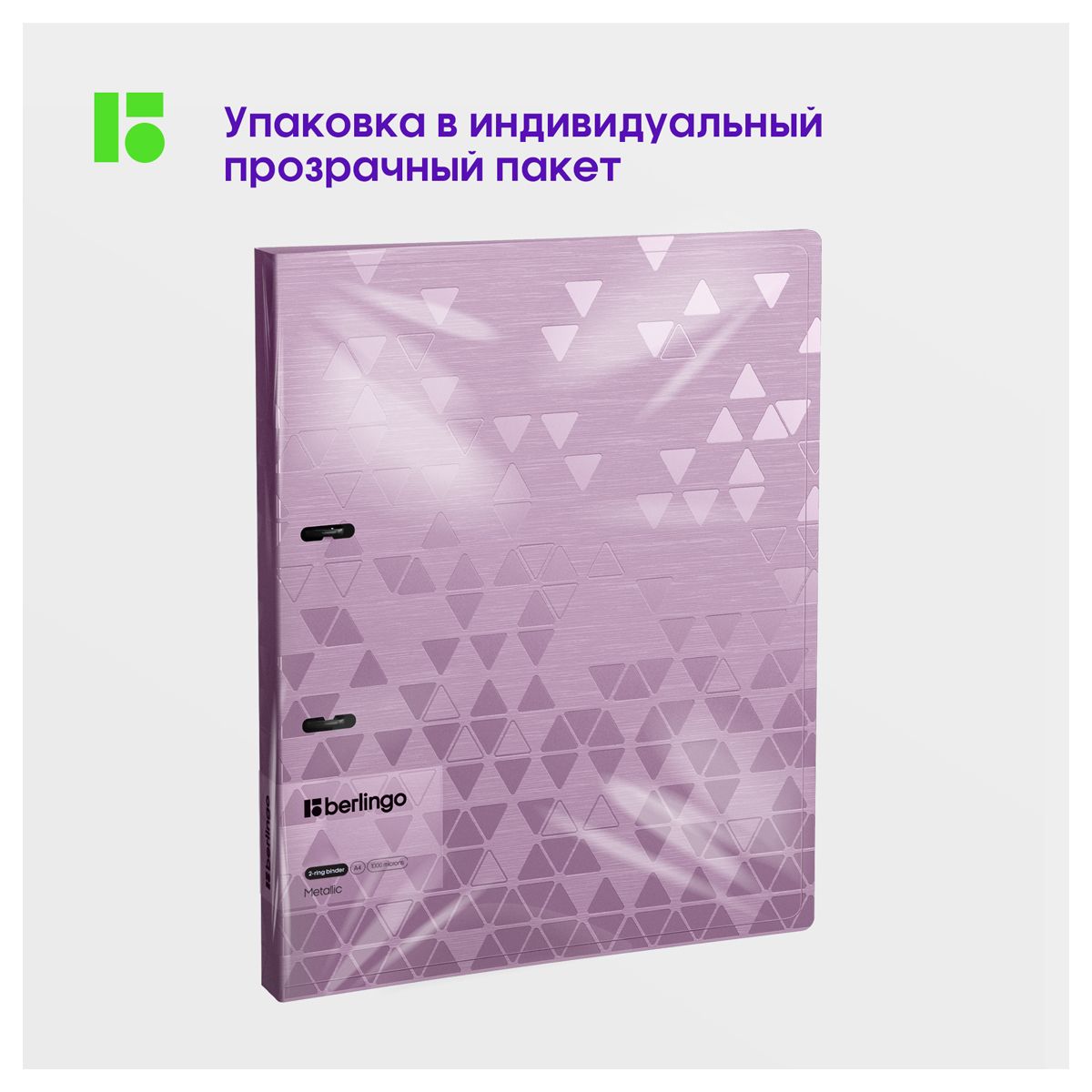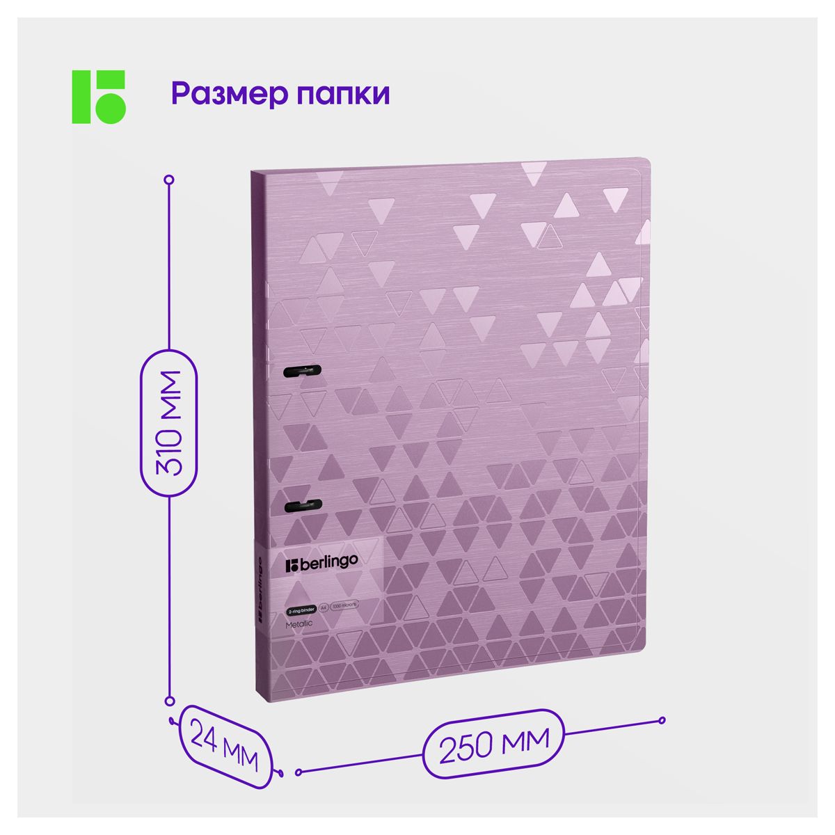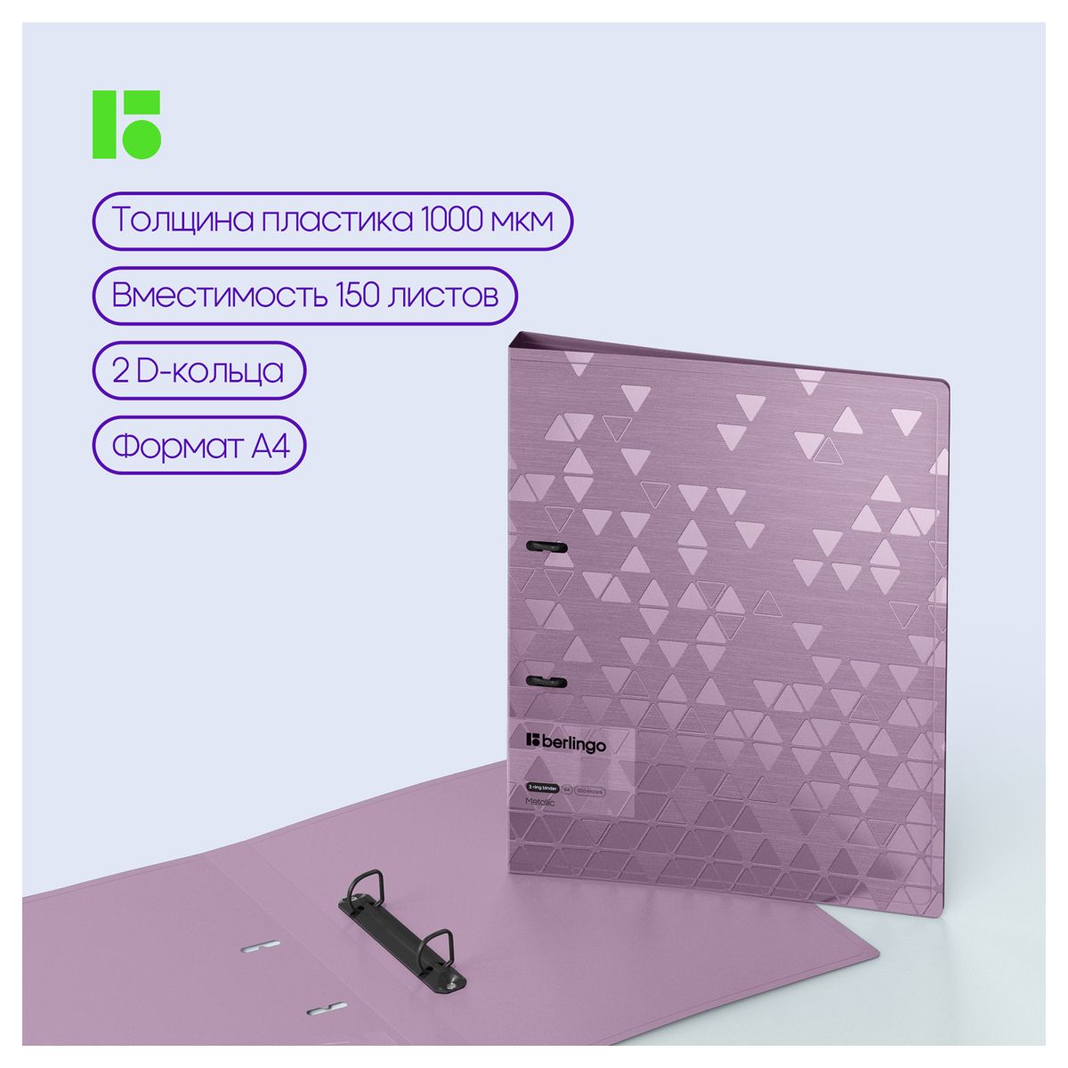 Папка на 2 кольцах Berlingo "Metallic", 24мм, 1000мкм, сиреневый металлик, D-кольца, с внутр. карманом