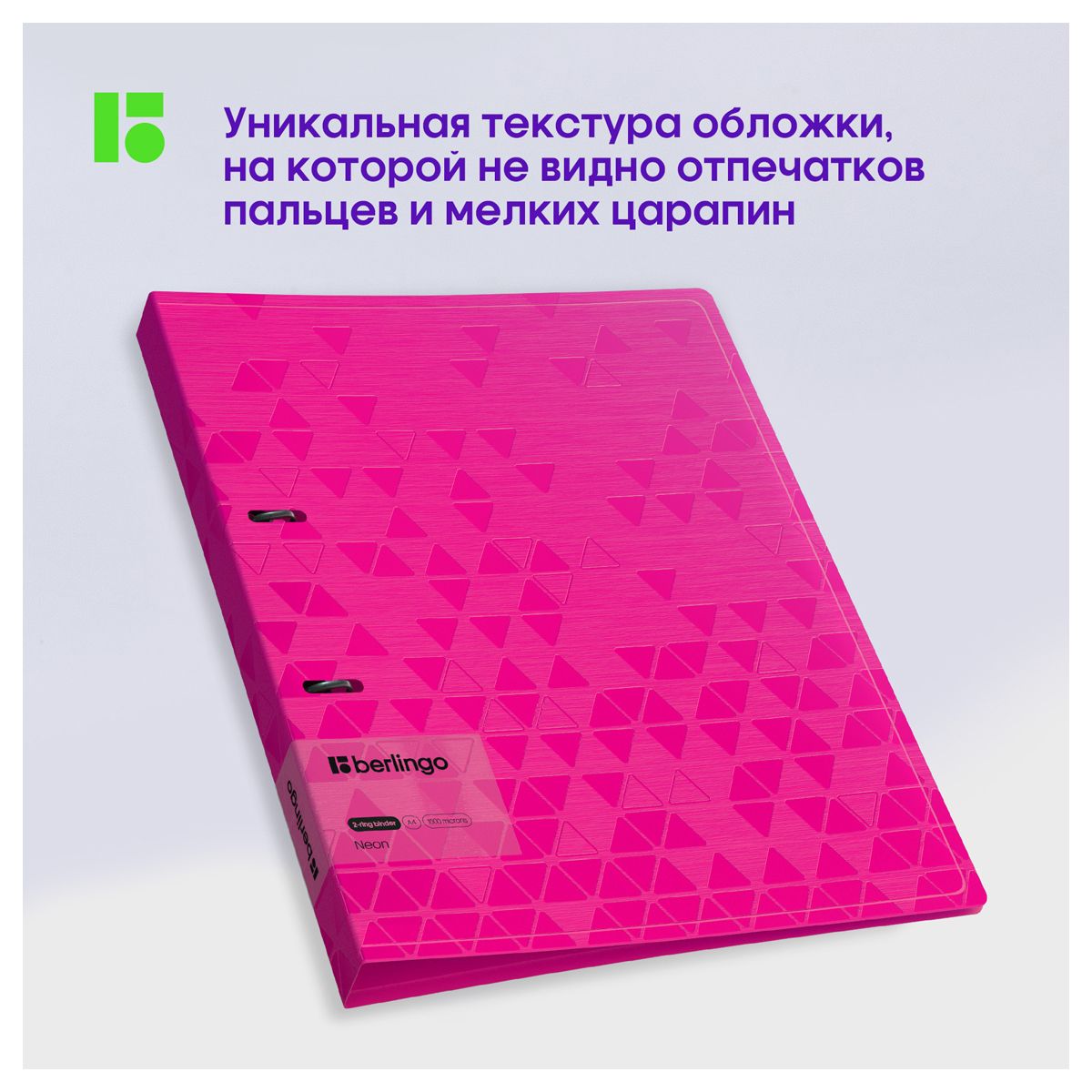 Папка на 2 кольцах Berlingo "Neon", 24мм, 1000мкм, розовый неон, D-кольца, с внутр. карманом