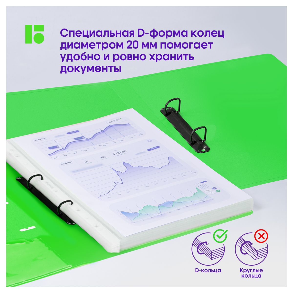 Папка на 2 кольцах Berlingo "Neon", 24мм, 1000мкм, зеленый неон, D-кольца, с внутр. карманом