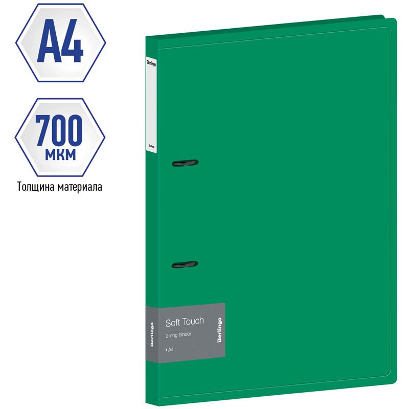 Папка на 2 кольцах Berlingo "Soft Touch", 24мм, 700мкм, зеленая, D-кольца, с внутр. карманом