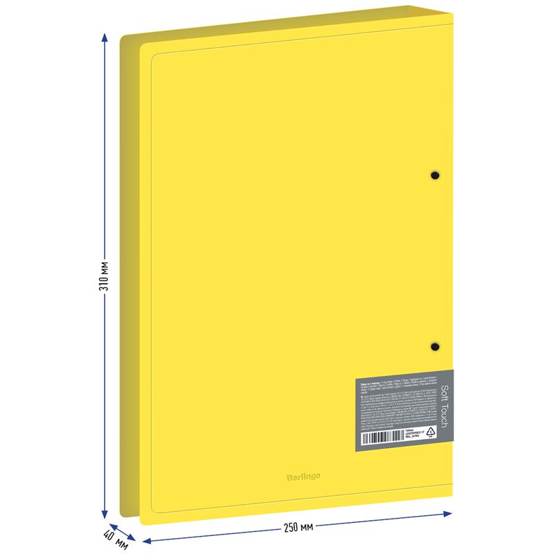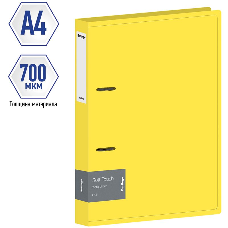 Папка на 2 кольцах Berlingo "Soft Touch", 40мм, 700мкм, желтая, D-кольца, с внутр. карманом