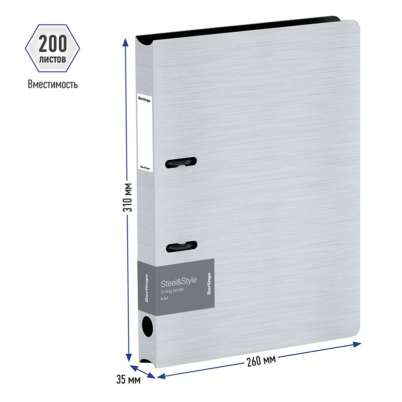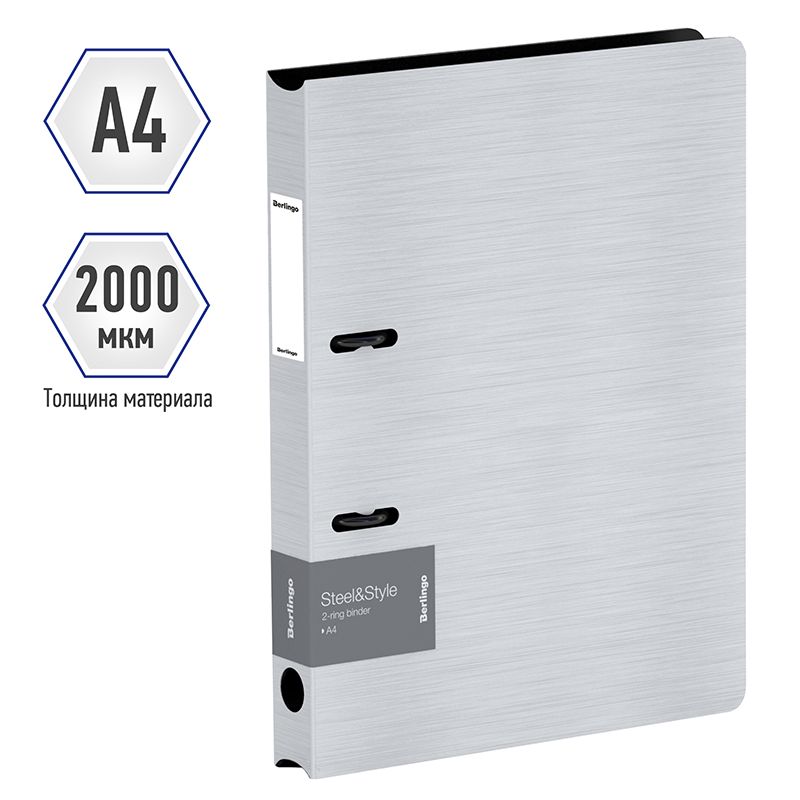 Папка на 2 кольцах Berlingo "Steel&Style", 35мм, 2000мкм, D-кольца, пластик (полифом), белая
