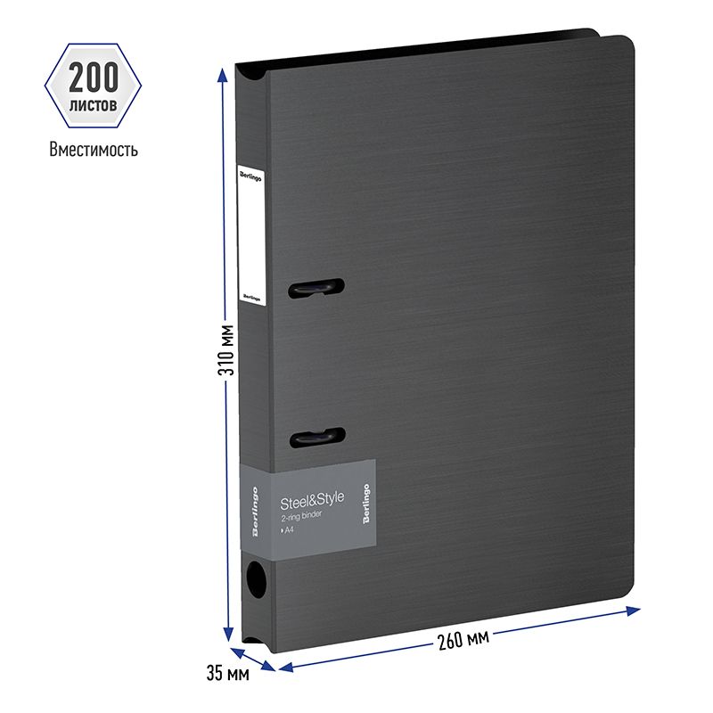 Папка на 2 кольцах Berlingo "Steel&Style", 35мм, 2000мкм, D-кольца, пластик (полифом), черная
