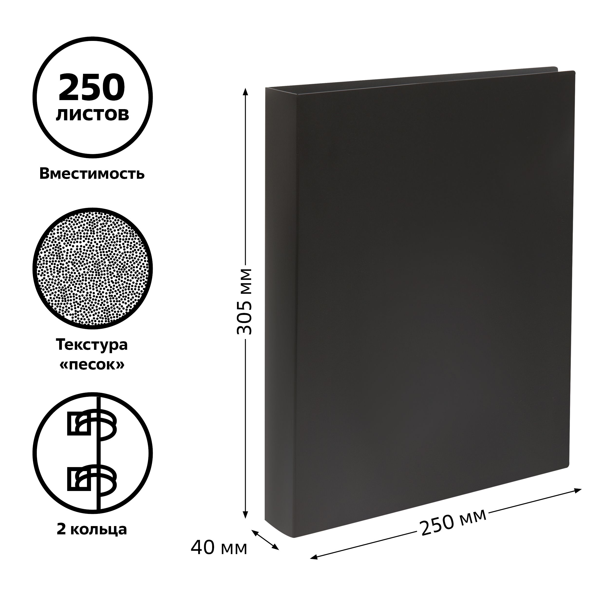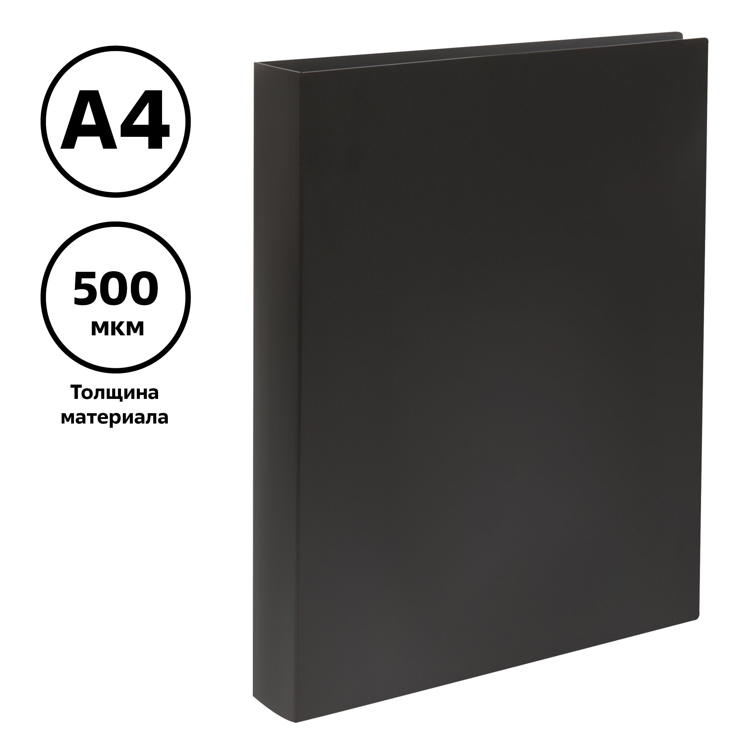 Папка на 2 кольцах СТАММ А4, 40мм, 500мкм, пластик, черная