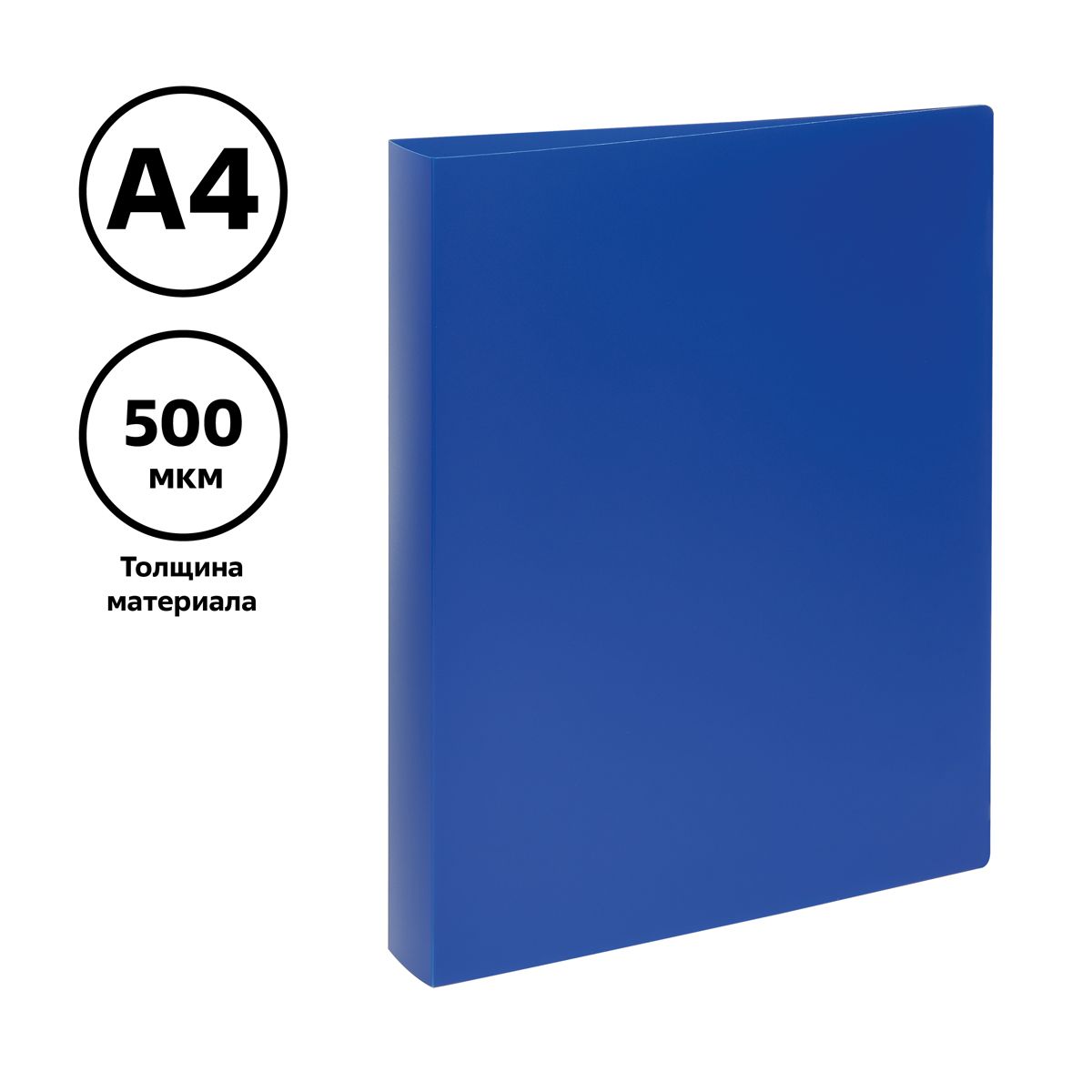 Папка на 2 кольцах СТАММ А4, 40мм, 500мкм, пластик, синяя