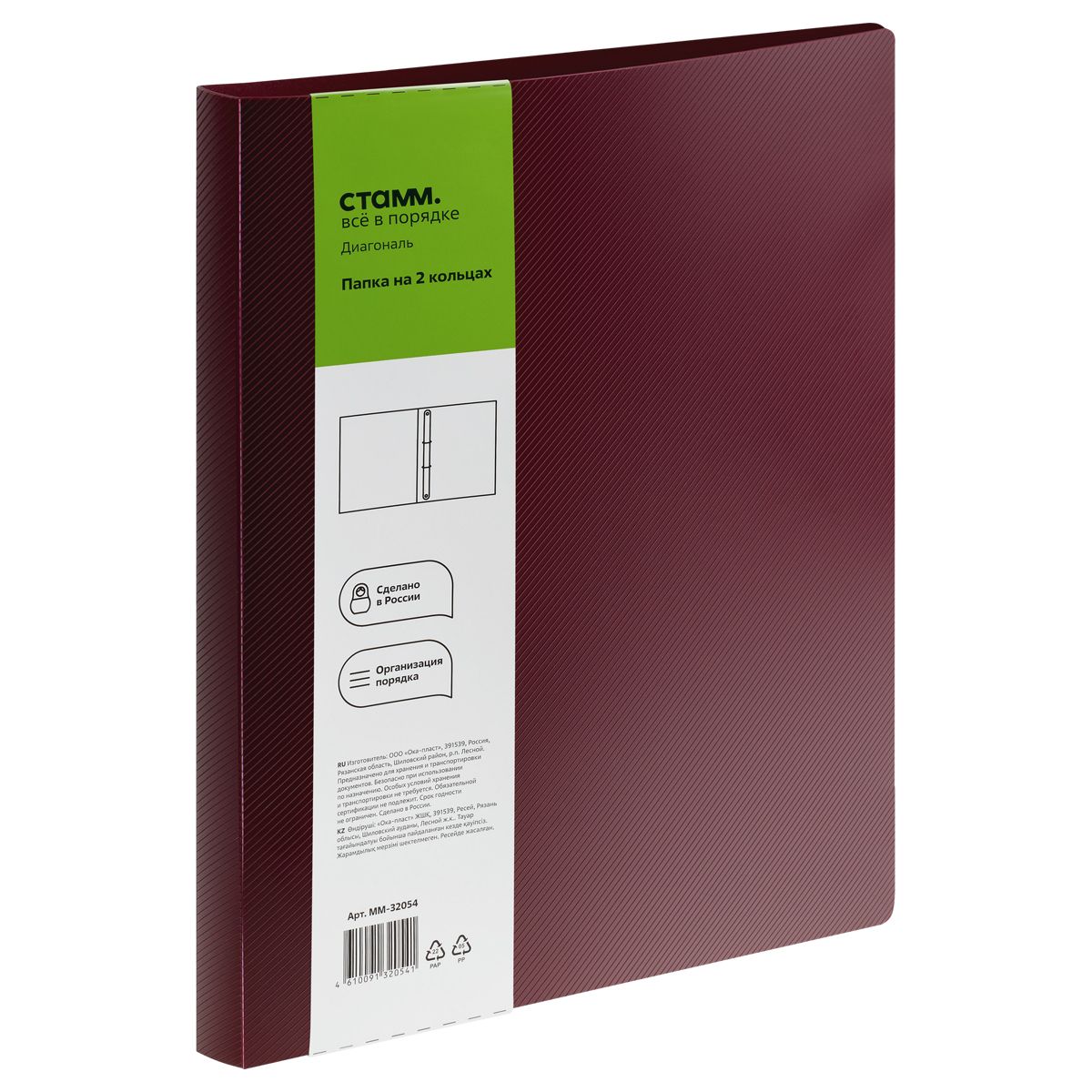 Папка на 2 кольцах СТАММ "Диагональ" А4, 25мм, 700мкм, пластик, гранат