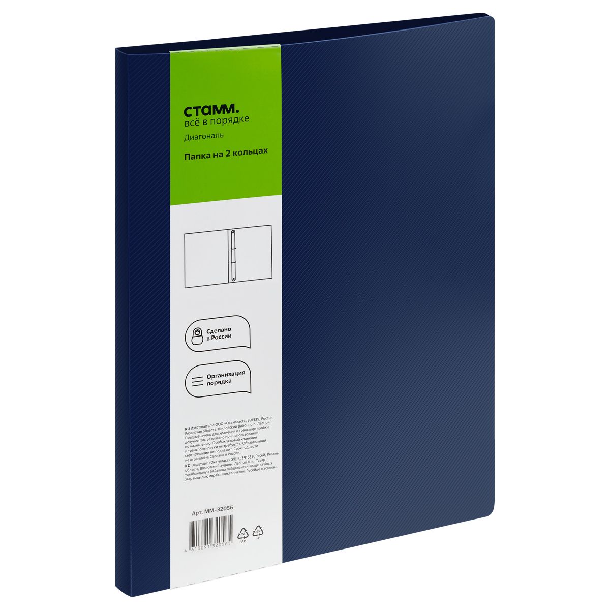 Папка на 2 кольцах СТАММ "Диагональ" А4, 25мм, 700мкм, пластик, сапфир