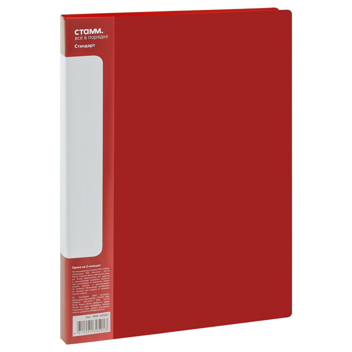 Папка на 2 кольцах СТАММ "Стандарт" А4, 25мм, 700мкм, пластик, красная