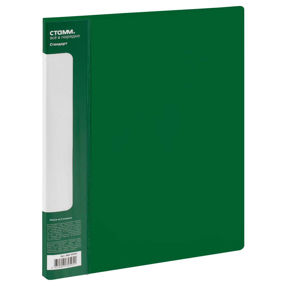 Папка на 2 кольцах СТАММ "Стандарт" А4, 40мм, 700мкм, пластик, зеленая