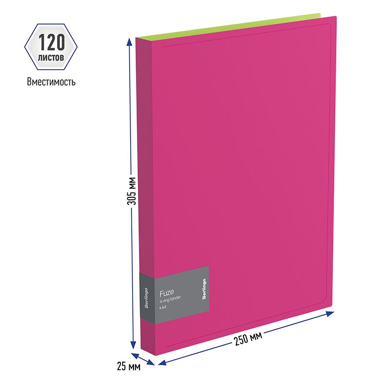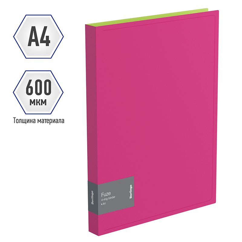 Папка на 4-х кольцах Berlingo "Fuze", 25мм, 600мкм, розовая