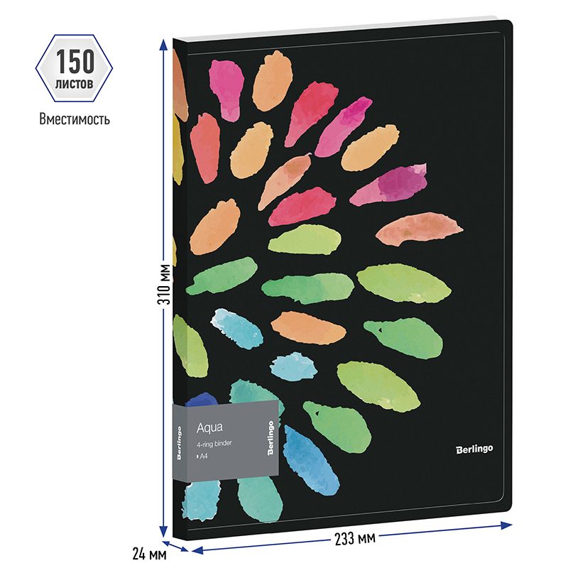 Папка на 4 кольцах Berlingo "Aqua", 24мм, 600мкм, D-кольца, с внутр. карманом, с рисунком