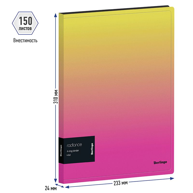 Папка на 4 кольцах Berlingo "Radiance", 24мм, 600мкм, D-кольца, с внутр. карманом, желтый/розовый градиент
