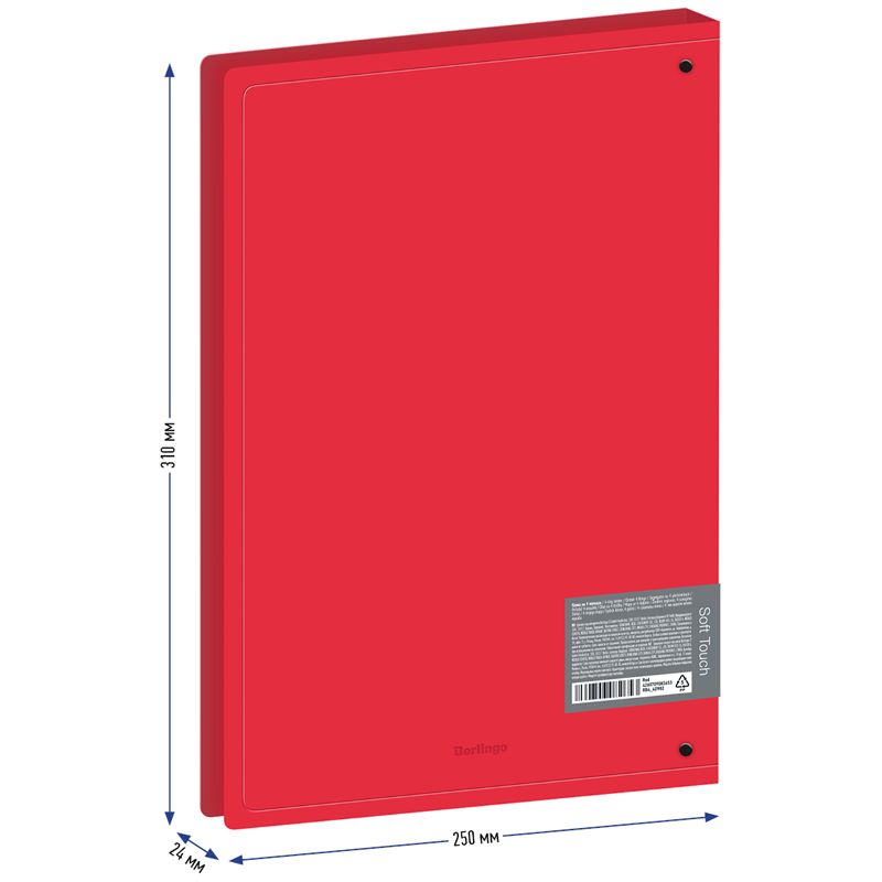 Папка на 4 кольцах Berlingo "Soft Touch", 24мм, 700мкм, красная, D-кольца, с внутр. карманом