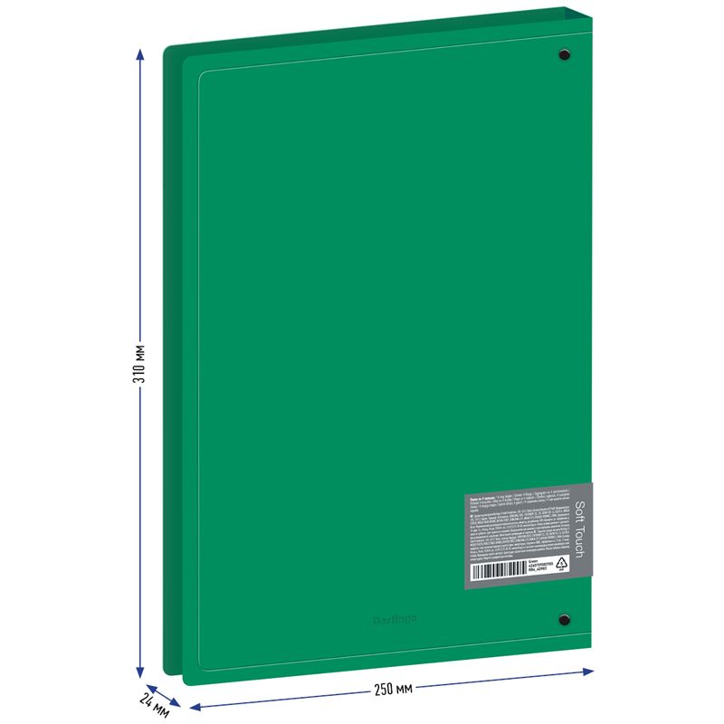 Папка на 4 кольцах Berlingo "Soft Touch", 24мм, 700мкм, зеленая, D-кольца, с внутр. карманом
