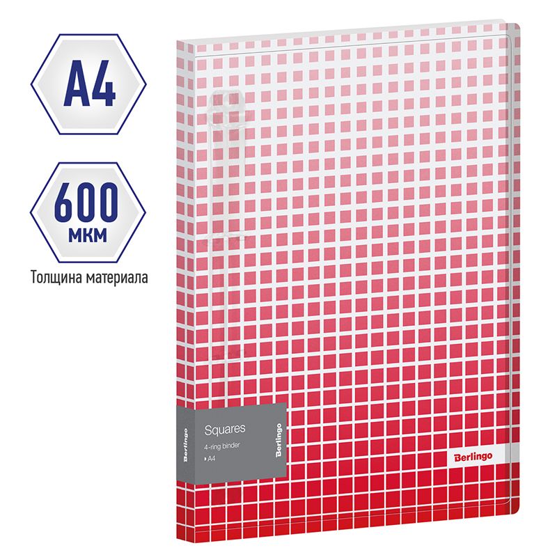 Папка на 4 кольцах Berlingo "Squares", 24мм, 600мкм, D-кольца, с внутр. карманом