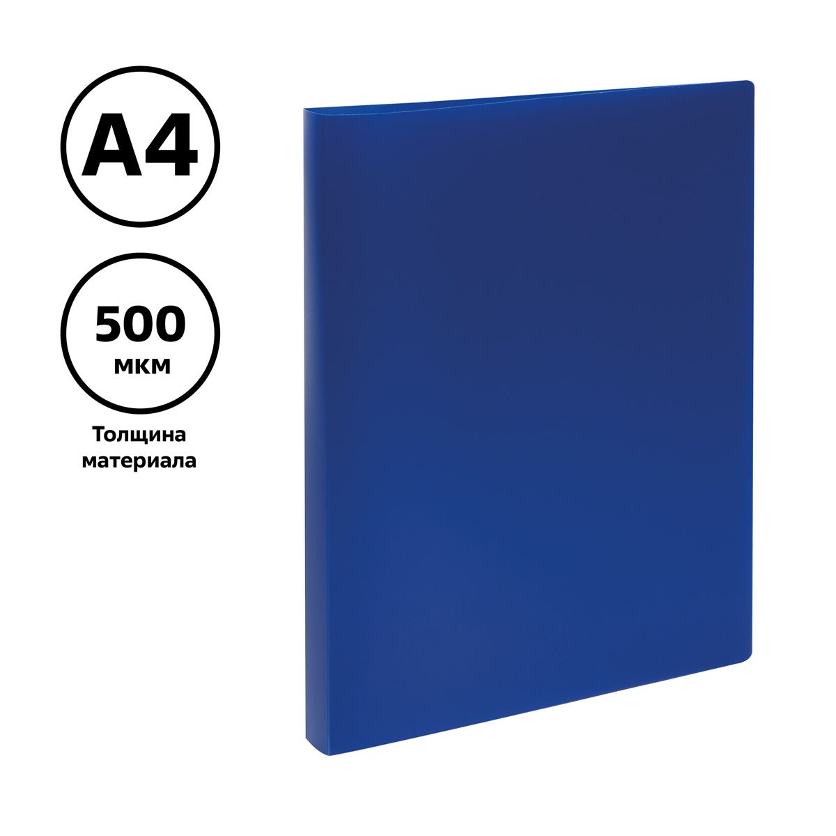 Папка на 4 кольцах СТАММ А4, 25мм, 500мкм, пластик, синяя