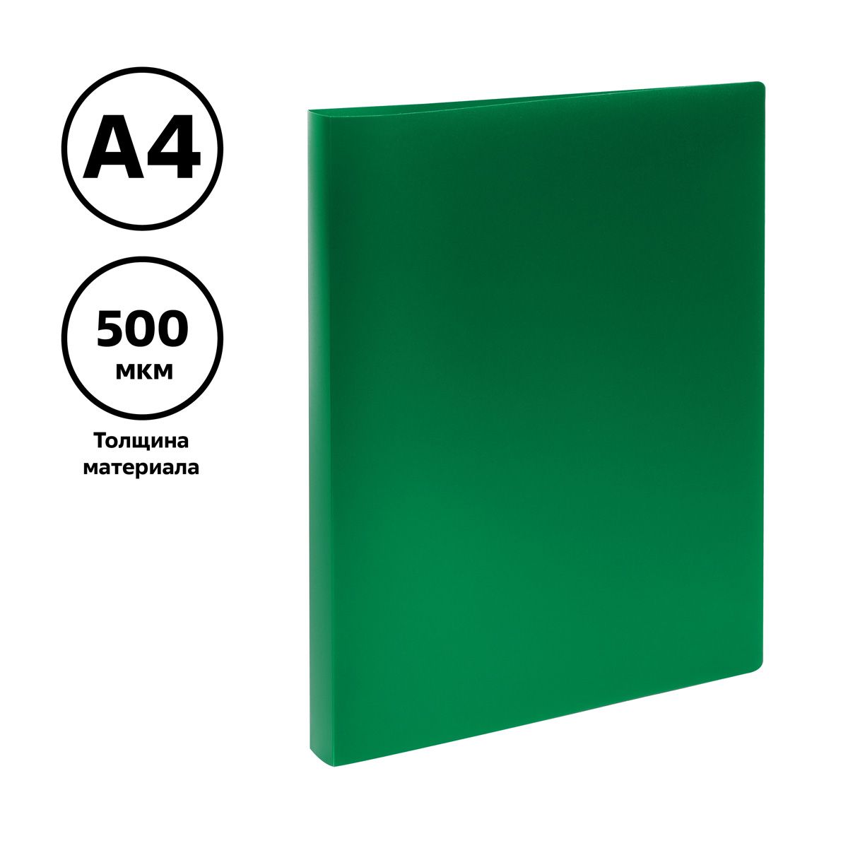 Папка на 4 кольцах СТАММ А4, 25мм, 500мкм, пластик, зеленая