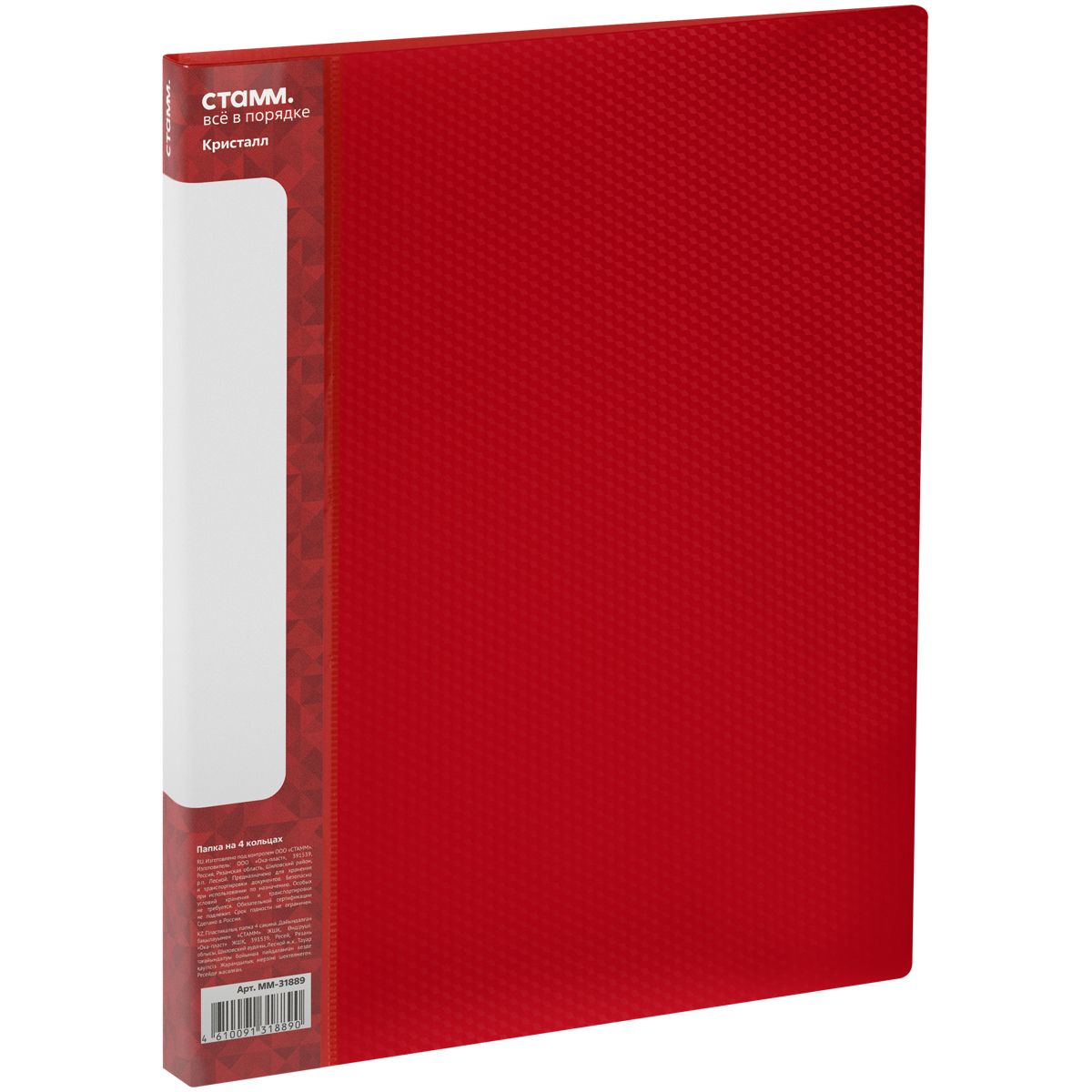 Папка на 4 кольцах СТАММ "Кристалл" А4, 25мм, 700мкм, пластик, красная