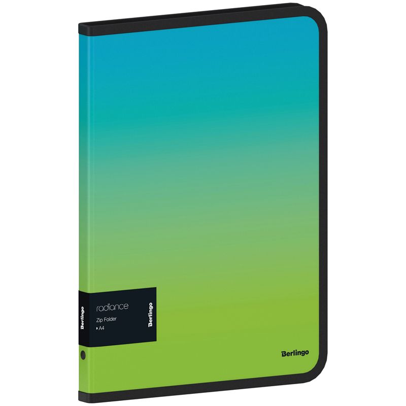 Папка на молнии Berlingo "Radiance" А4, 600мкм, голубой/зеленый градиент, с рисунком