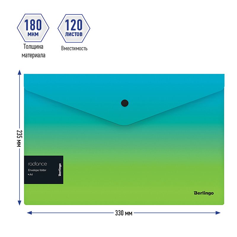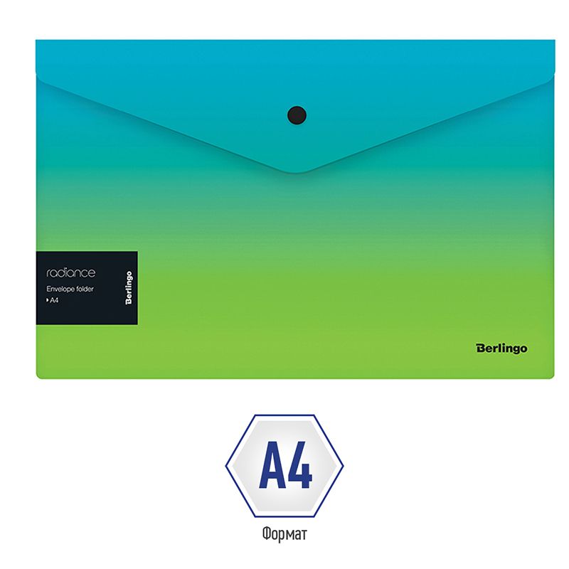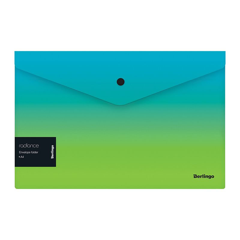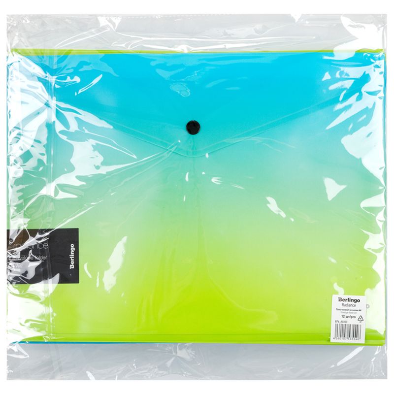 Папка-конверт на кнопке Berlingo "Radiance" А4, 180мкм, голубой/зеленый градиент, с рисунком