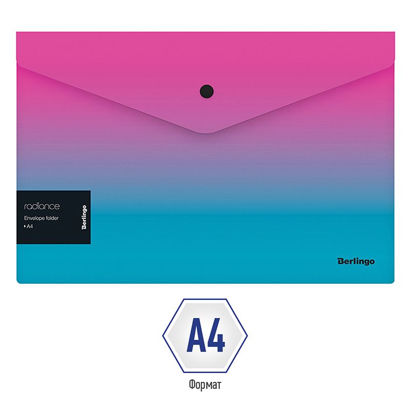 Папка-конверт на кнопке Berlingo "Radiance" А4, 180мкм, розовый/голубой градиент, с рисунком