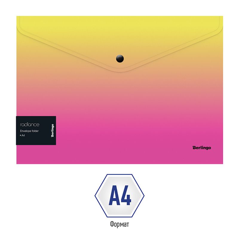 Папка-конверт на кнопке Berlingo "Radiance" А4, 180мкм, желтый/розовый градиент, с рисунком