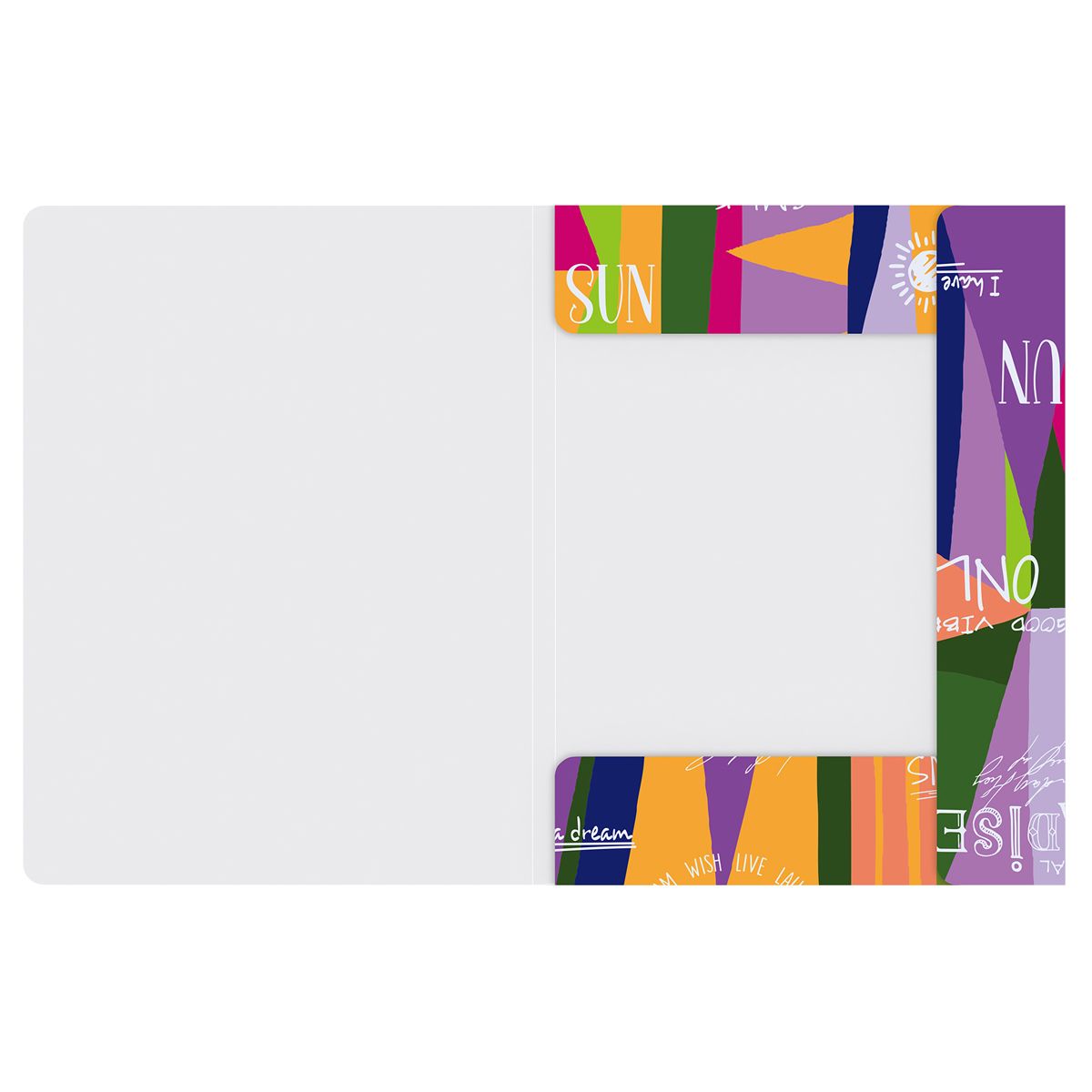Папка изготовлена из высококачественного полипропилена с матовой текстурой поверхности «песок», на которой не видно отпечатков пальцев и мелких царапин. Толщина обложки 600 мкм. Креативный дизайн коллекционной серии Jumble поможет сделать яркий акцент в оформлении рабочего пространства. Внутренняя поверхность выполнена в белом цвете. Надёжные застёжки-резинки помогают избежать повреждения документов и легко открываются. Упакована в индивидуальный прозрачный пакет по форме.