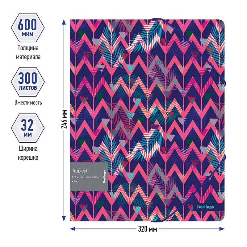 Папка на резинке Berlingo "Tropical" А4, 600мкм, с рисунком