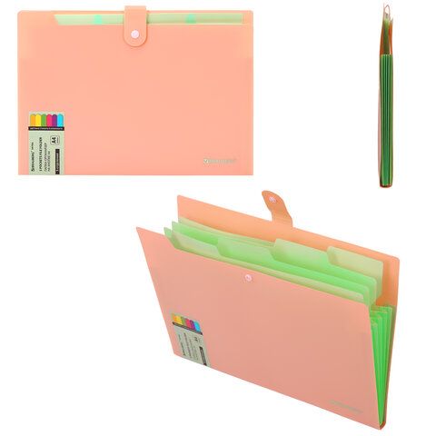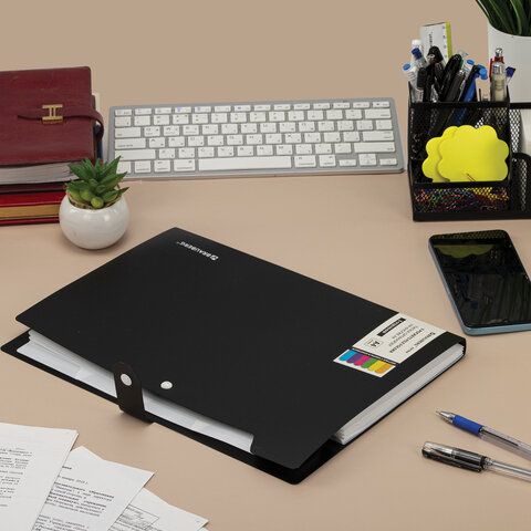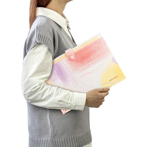 Материал, из которого изготавливаются такие папки, обычно — полипропилен. Он прочный, устойчив к влаге и не деформируется со временем. Пластиковые папки с отделениями легко чистятся, компактны и долговечны.
