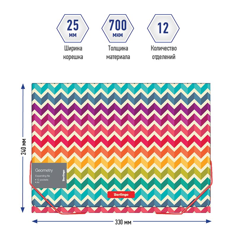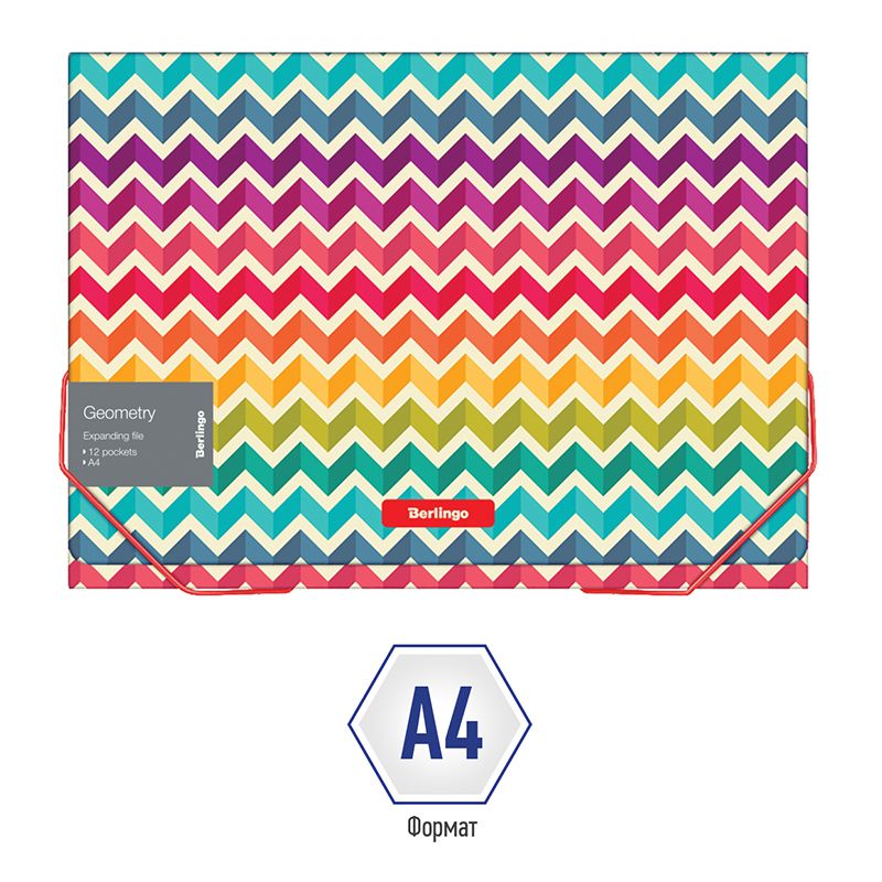 Папка 12 отделений Berlingo "Geometry" А4, 330*240*25мм, 700мкм, на резинке, c рисунком