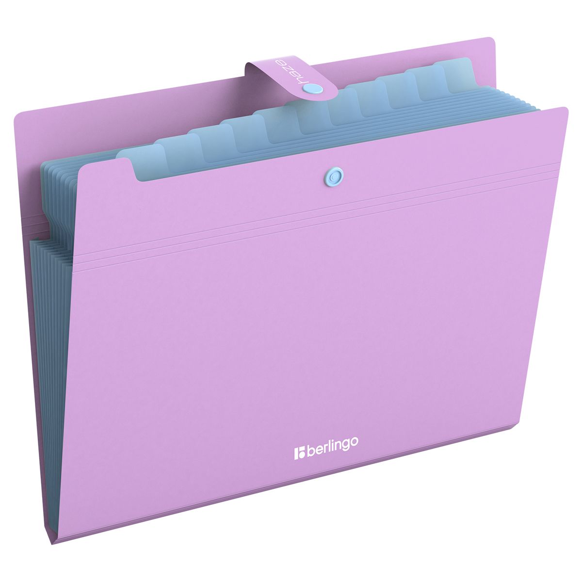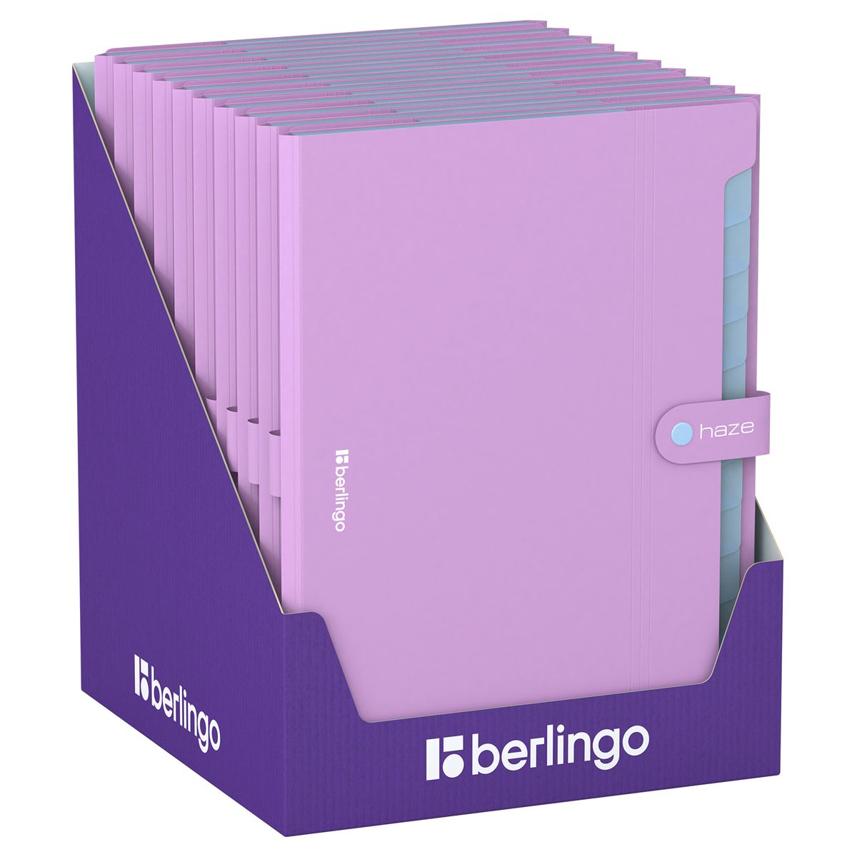 Папка 12 отделений Berlingo "Haze", А4, 600мкм, на кнопке, сиреневая