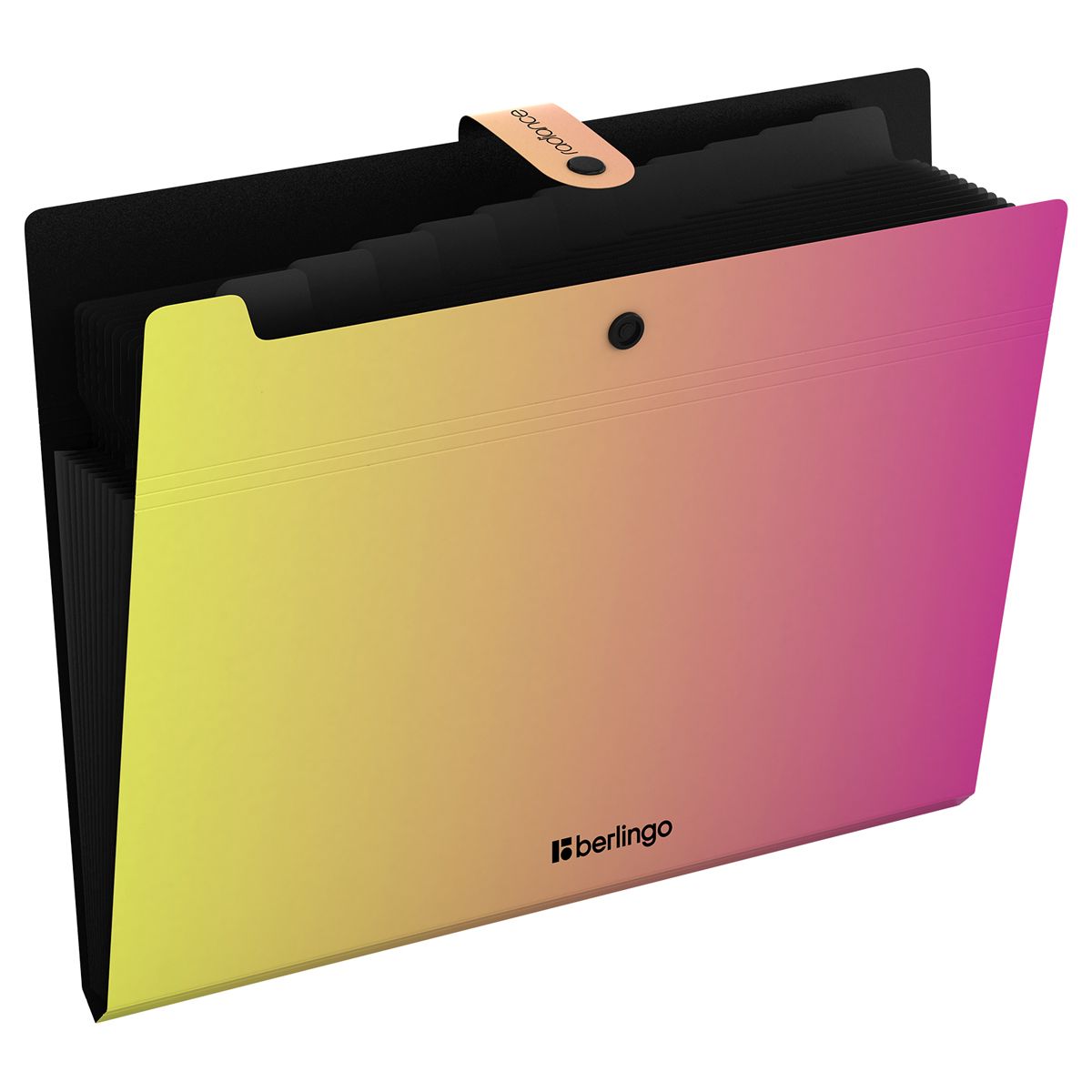 Папка 12 отделений Berlingo "Radiance", А4, 600мкм, на кнопке, желтый/розовый градиент
