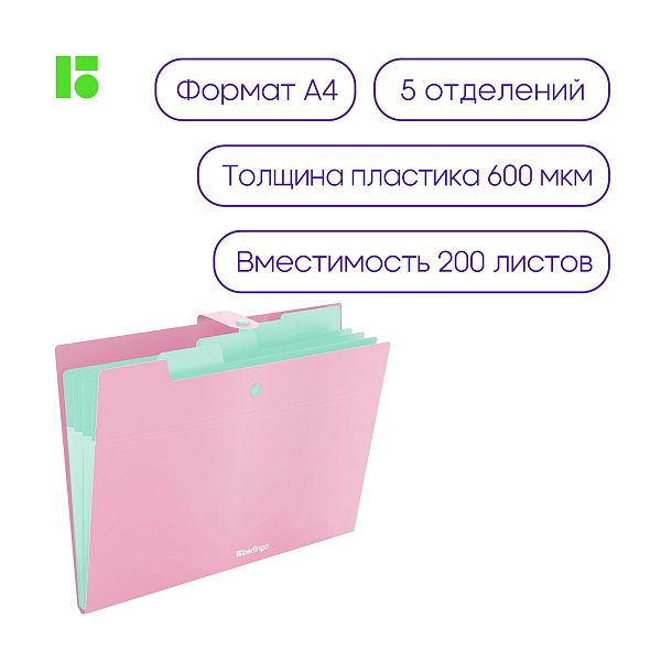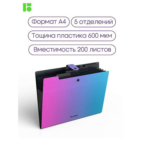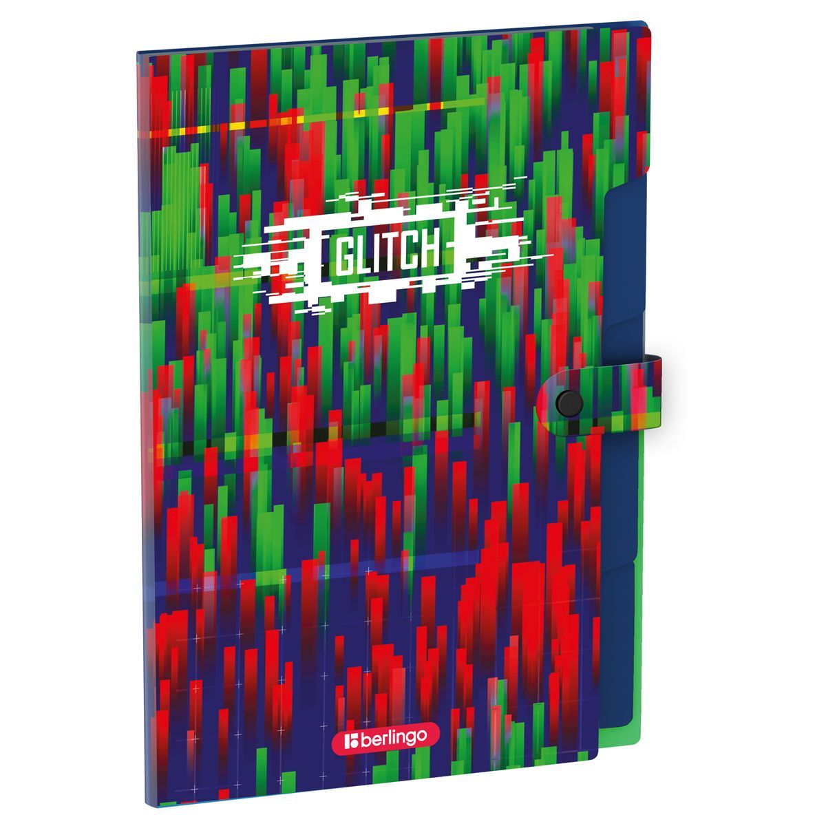 Папка 5 отделений Berlingo "Glitch", А4, 600мкм, на кнопке, с рисунком