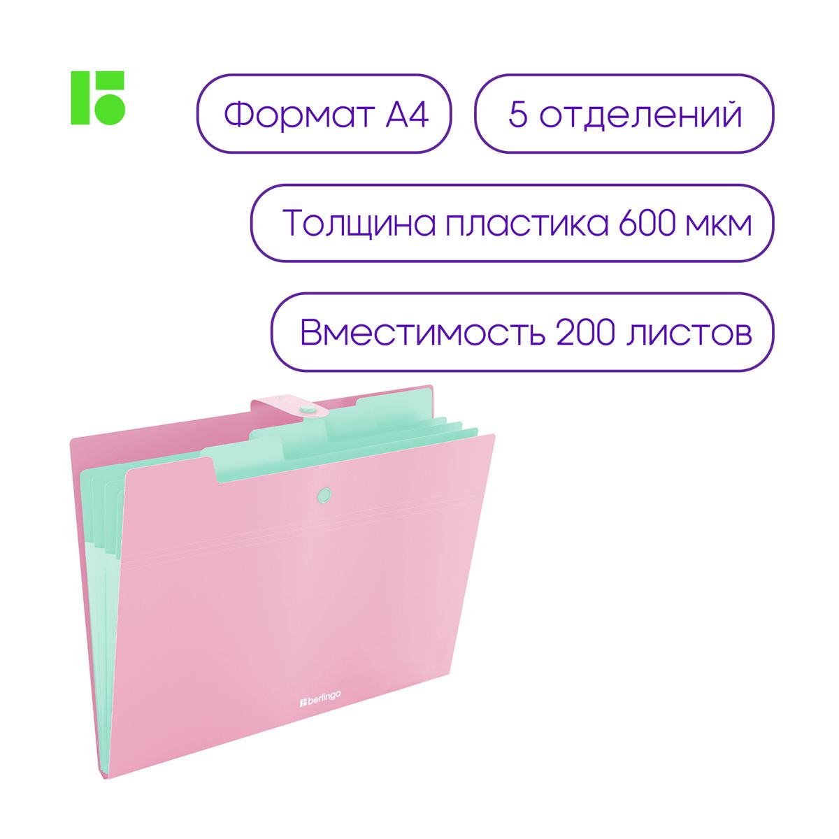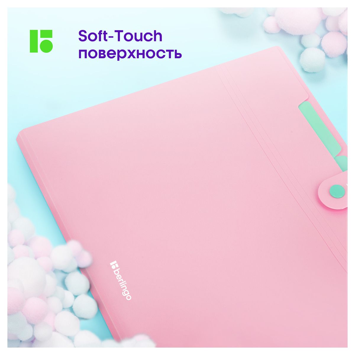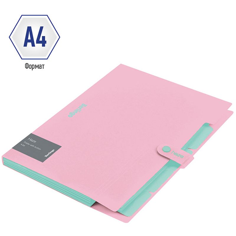 Папка 5 отделений Berlingo "Haze", А4, 600мкм, на кнопке, розовая, софт-тач