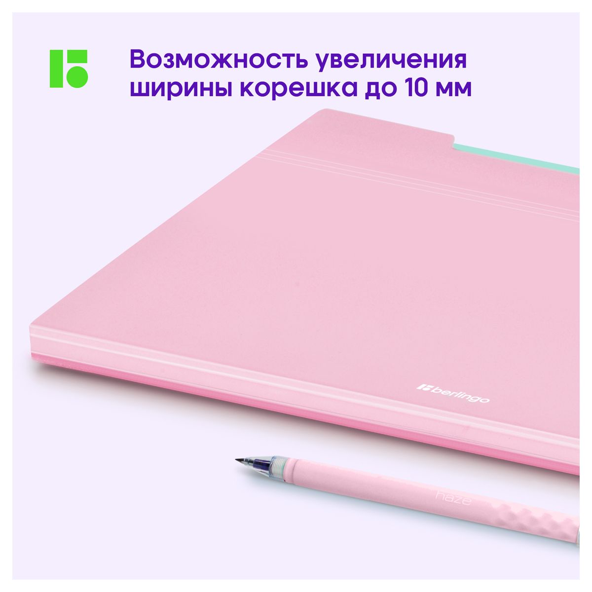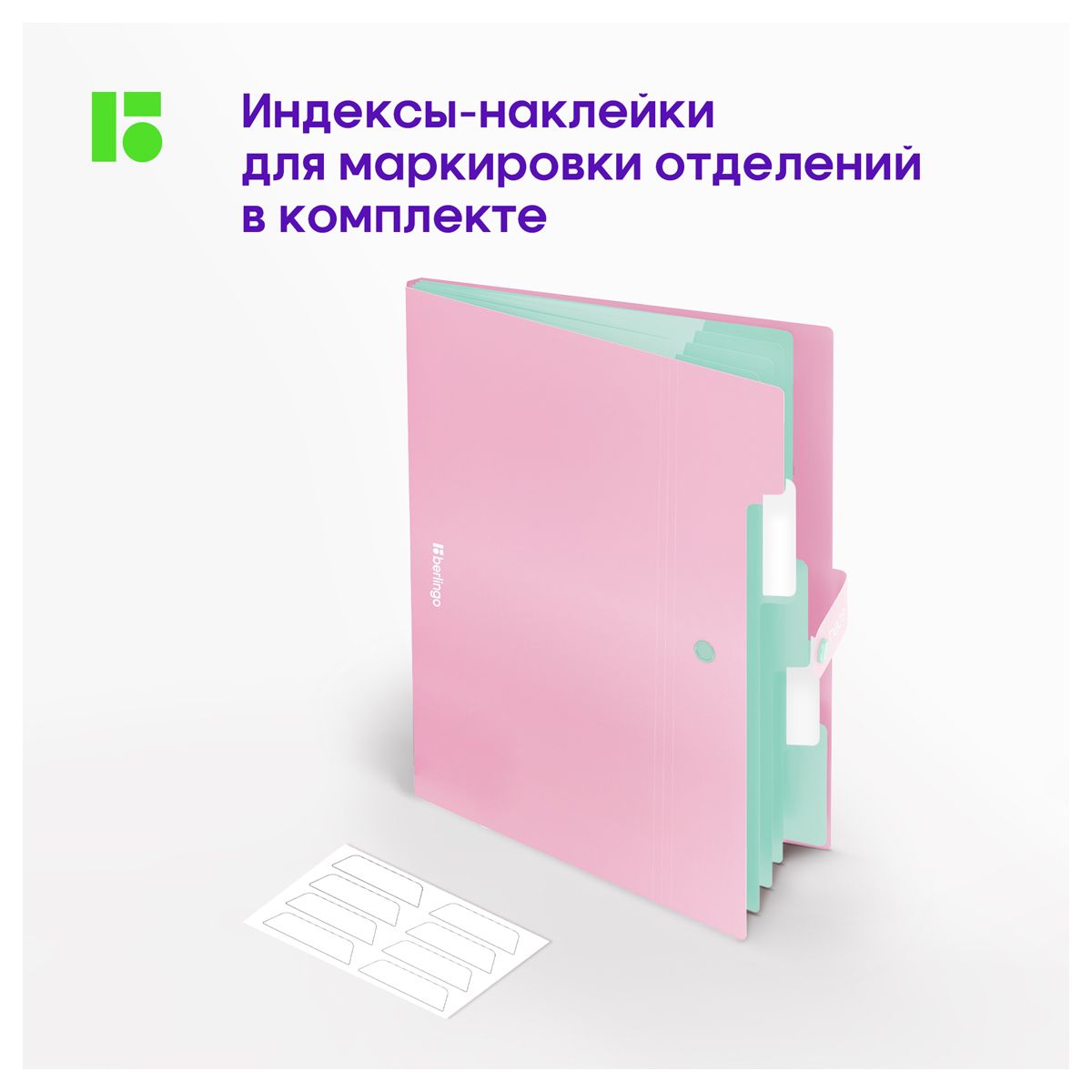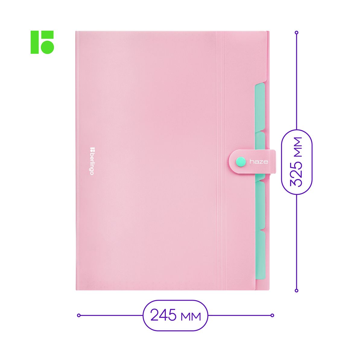 Папка 5 отделений Berlingo "Haze", А4, 600мкм, на кнопке, розовая, софт-тач