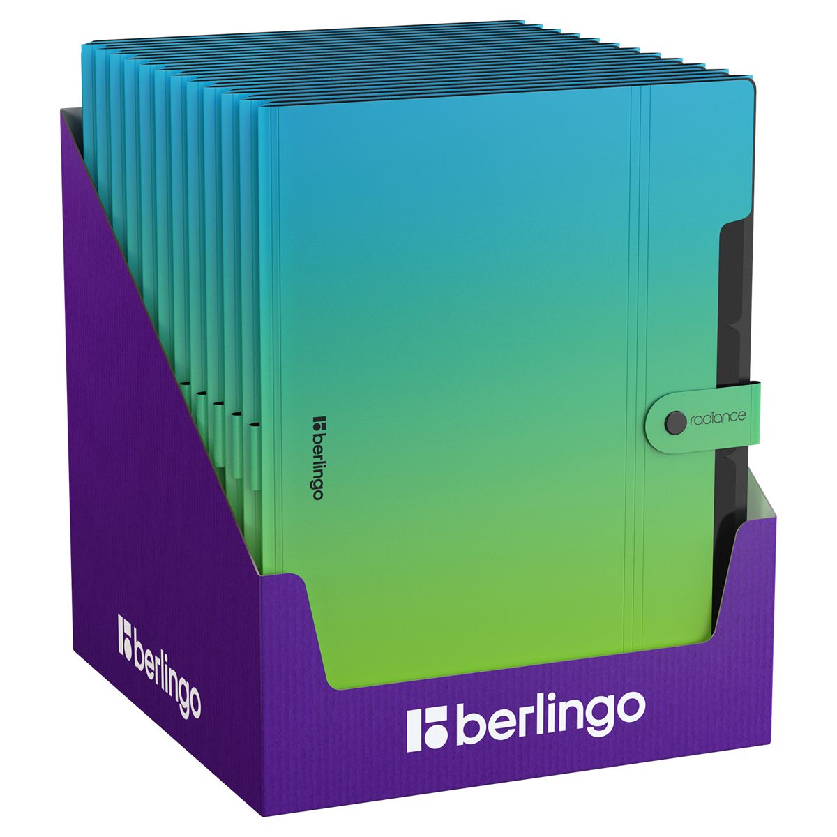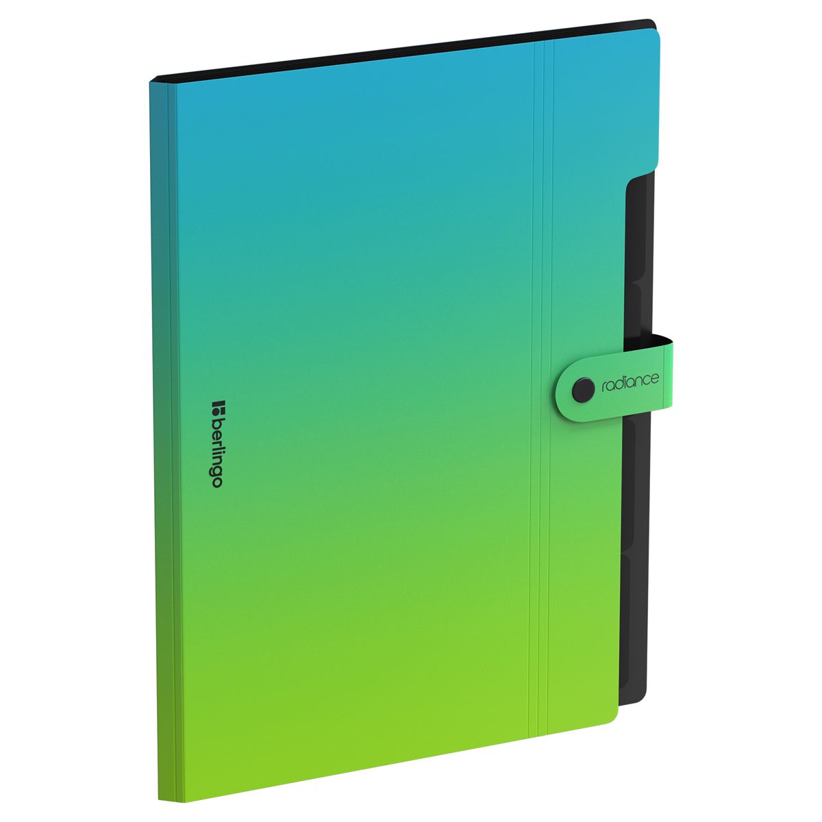 Папка 5 отделений Berlingo "Radiance", А4, 600мкм, на кнопке, голубой/зеленый градиент