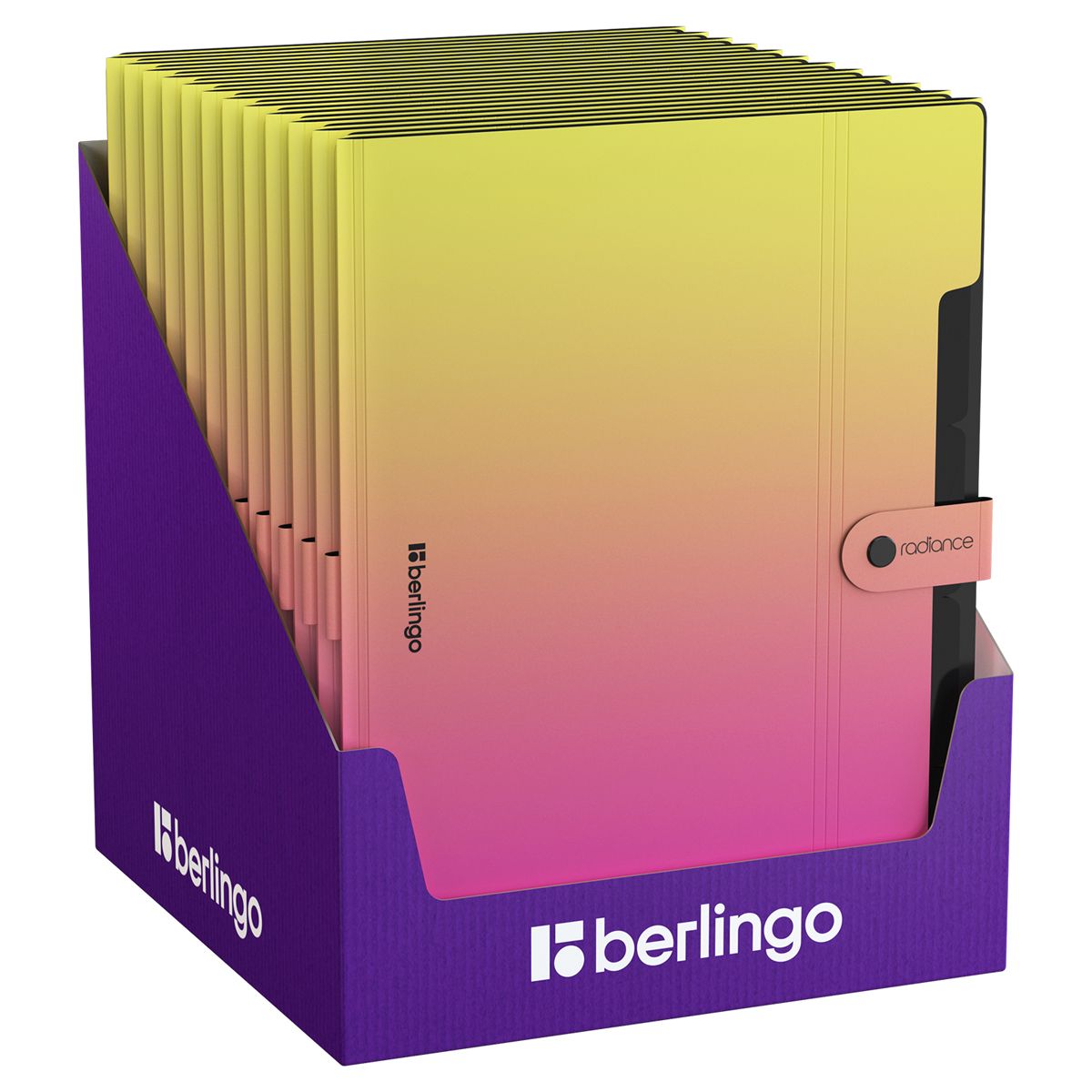 Папка 5 отделений Berlingo "Radiance", А4, 600мкм, на кнопке, желтый/розовый градиент